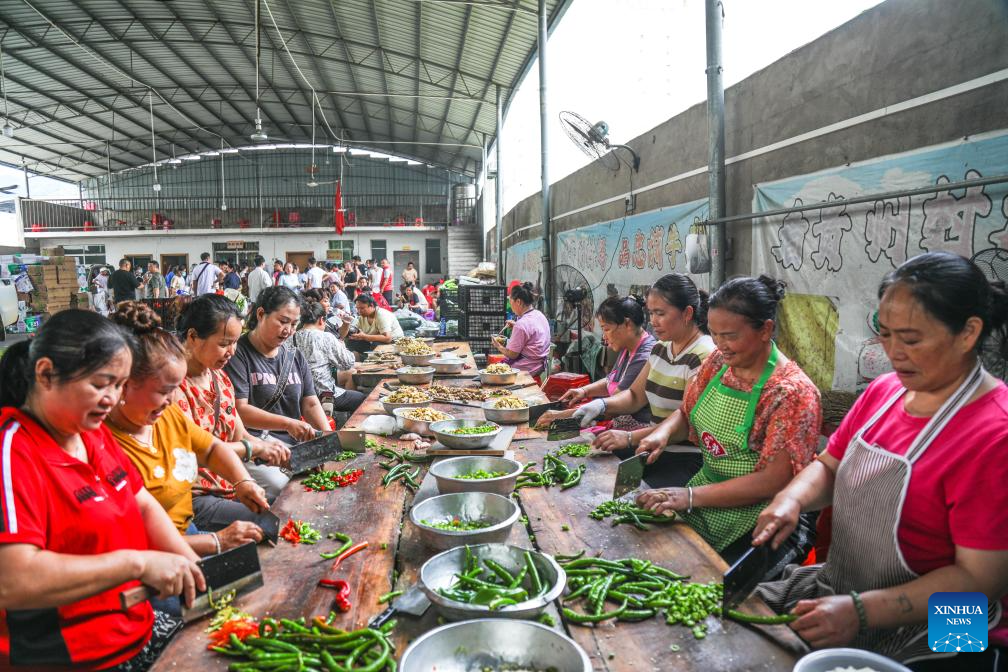 Local volunteers prepare food at a dedicated kitchen for emergency workers at Zhongcheng Town, Rongjiang County of southwest China's Guizhou Province, June 27, 2025.