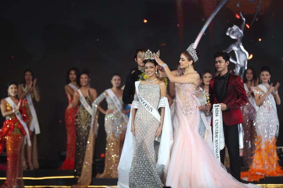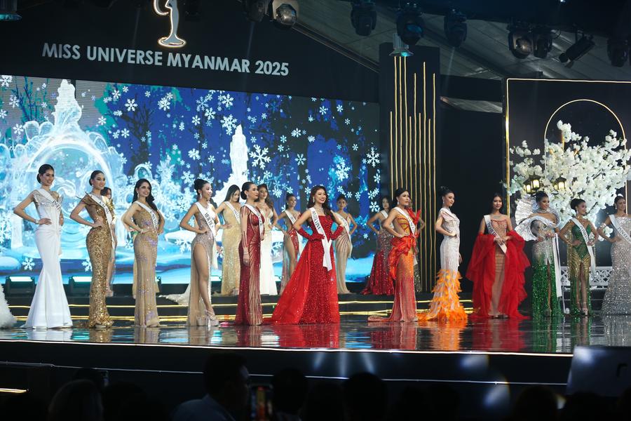 Myat Yadanar Soe (L, front) is crowned the title of "Miss Universe Myanmar 2025" in the Miss Universe Myanmar 2025 finale held in Yangon, Myanmar, June 27, 2025. (Xinhua/Myo Kyaw Soe)Contestants participate in the Miss Universe Myanmar 2025 in Yangon, Myanmar, June 27, 2025. (Xinhua/Myo Kyaw Soe)A contestant participates in the Miss Universe Myanmar 2025 in Yangon, Myanmar, June 27, 2025. (Xinhua/Myo Kyaw Soe)■