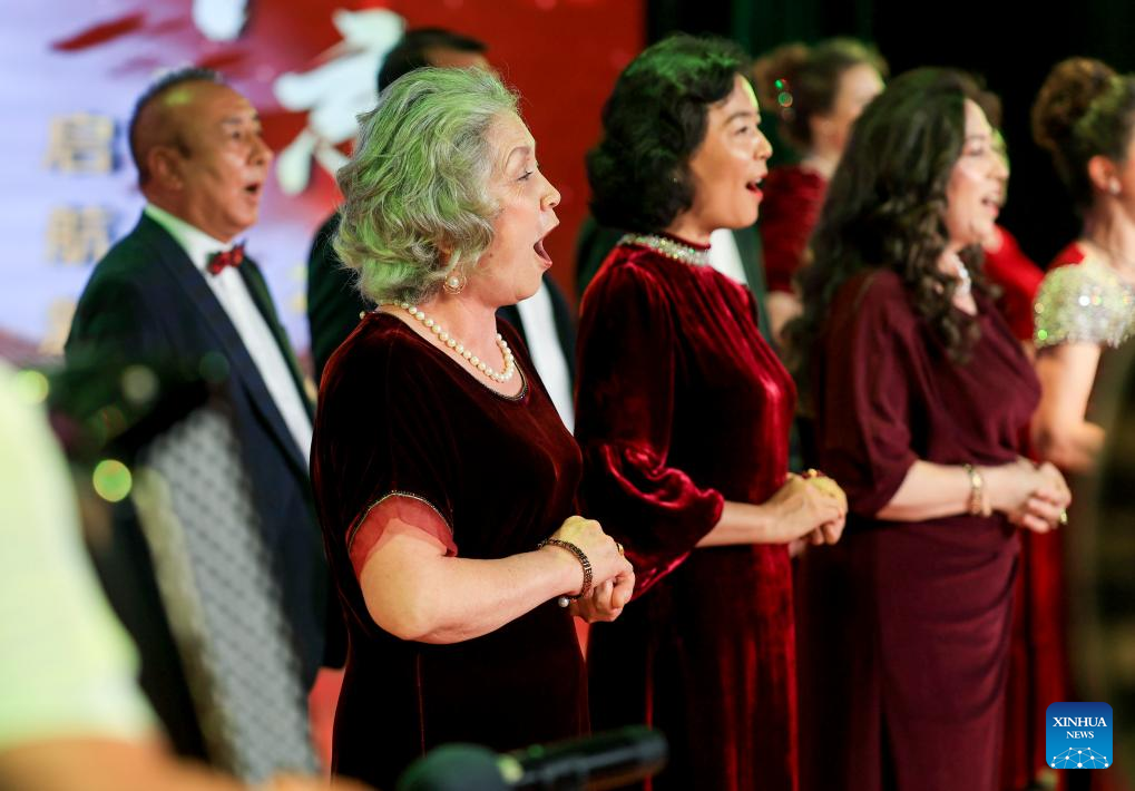 Graduates perform during the graduation ceremony at Xinjiang Open University for Seniors in Urumqi, northwest China's Xinjiang Uygur Autonomous Region, June 27, 2025. A graduation ceremony was held at Xinjiang Open University for Seniors on Friday to celebrate the graduation of its students. The event offered a stage for the elderly students to show their learning achievements, which also attracted their relatives, friends and local residents to take part in with various cultural activities.