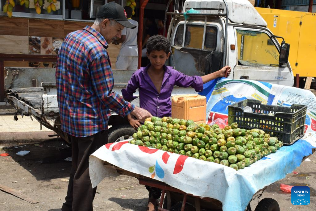 A man buys fruit from a vendor at a market in Aden, Yemen, June 29, 2025. The Yemeni rial has plummeted to an all-time low of approximately 2,760 per U.S. dollar in recent trading sessions, marking the currency's steepest depreciation since the outbreak of civil war in 2015 and deepening the suffering of millions already grappling with what the UN calls the world's worst humanitarian crisis. (Photo by Murad/Xinhua)