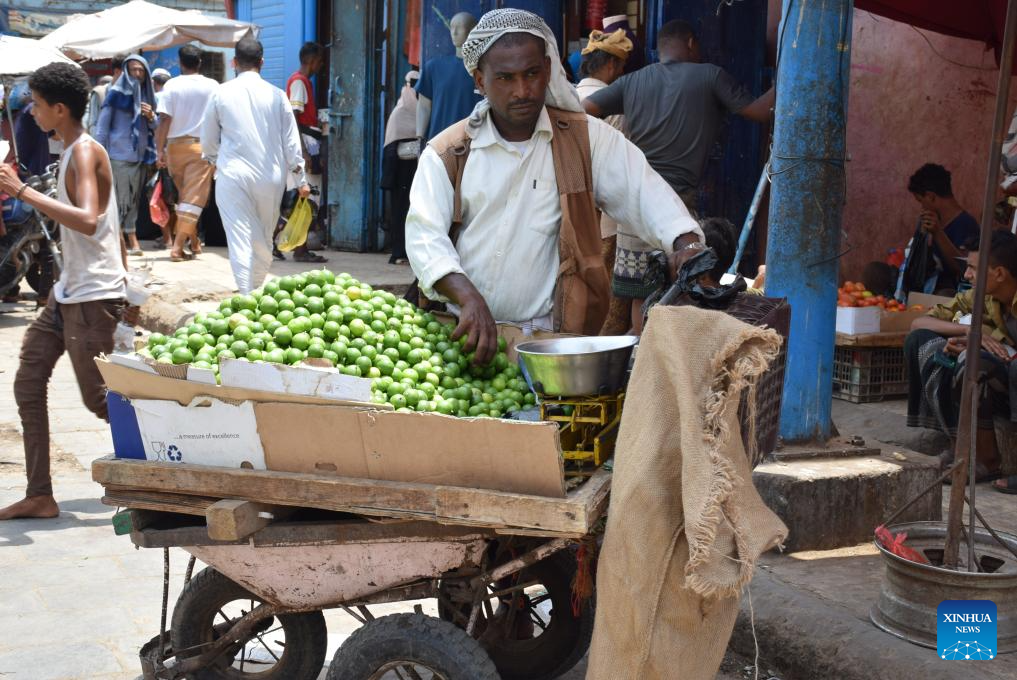 Vendors wait for customers at a market in Aden, Yemen, June 29, 2025. The Yemeni rial has plummeted to an all-time low of approximately 2,760 per U.S. dollar in recent trading sessions, marking the currency's steepest depreciation since the outbreak of civil war in 2015 and deepening the suffering of millions already grappling with what the UN calls the world's worst humanitarian crisis. (Photo by Murad/Xinhua)