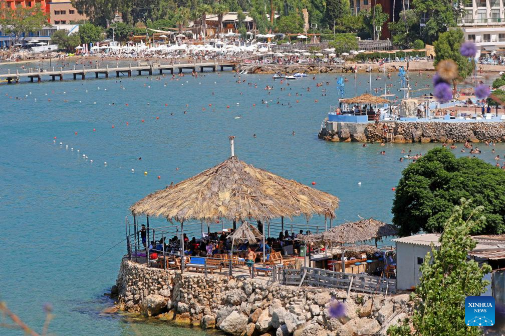 People enjoy themselves at the peak of summer in Chekka, Lebanon, June 29, 2025. (Xinhua/Bilal Jawich)