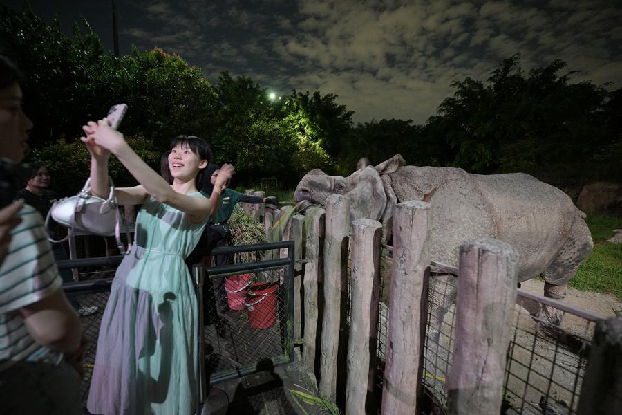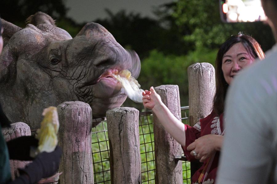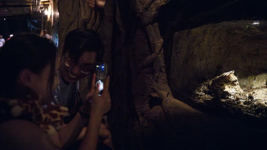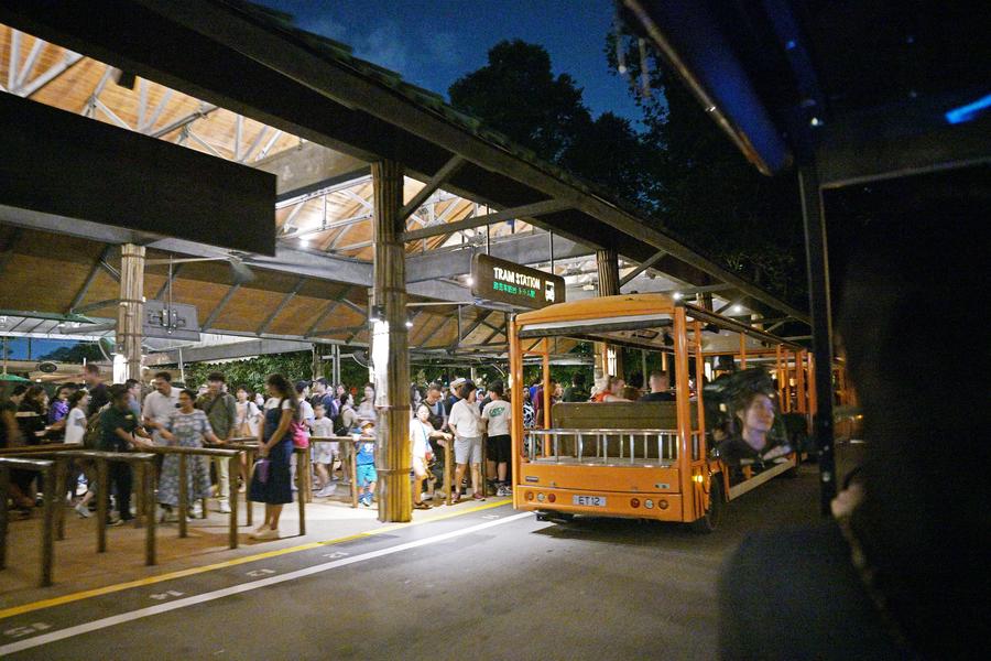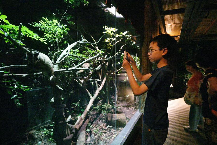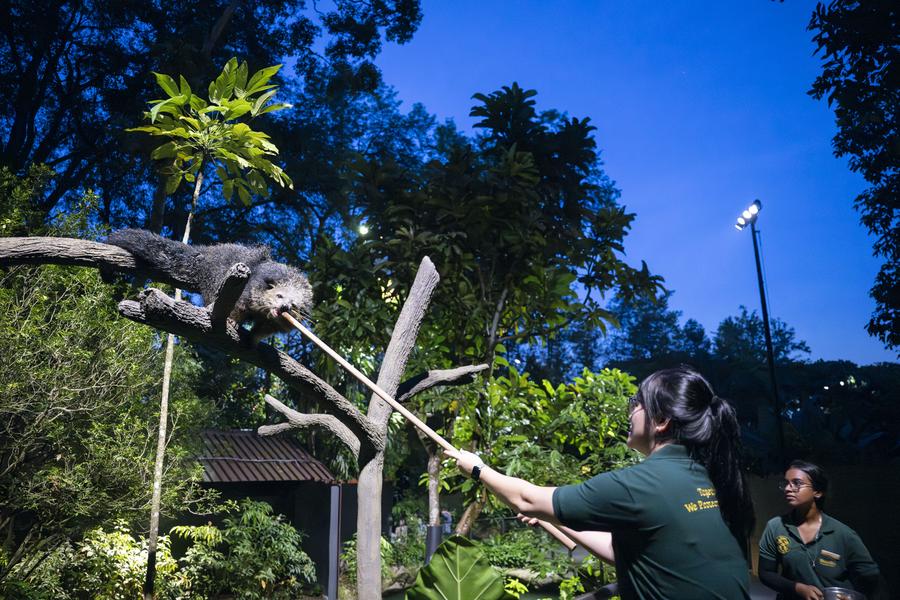 Tourists take a tram to view nocturnal animals at Singapore Night Safari in Singapore on June 23, 2025.A keeper feeds a binturong with a stick at Singapore Night Safari in Singapore on Oct. 10, 2024.A tourist takes photos of a leopard cat at the latest Pangolin Trail at Singapore Night Safari in Singapore on Oct. 10, 2024.A tourist takes a selfie with an Indian rhinoceros at Singapore Night Safari in Singapore, June 23, 2025.A hyena is seen at Singapore Night Safari in Singapore on June 23, 2025.A sloth bear is seen at Singapore Night Safari in Singapore on June 23, 2025.A Tasmanian devil from Australia opens its mouth at Singapore Night Safari in Singapore on Nov. 29, 2022.A Sunda pangolin is seen in its display enclosure at Singapore Night Safari in Singapore on Oct. 10, 2024.