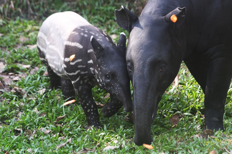 This file photo shows a Malayan tapir and its baby at Singapore Night Safari in Singapore.