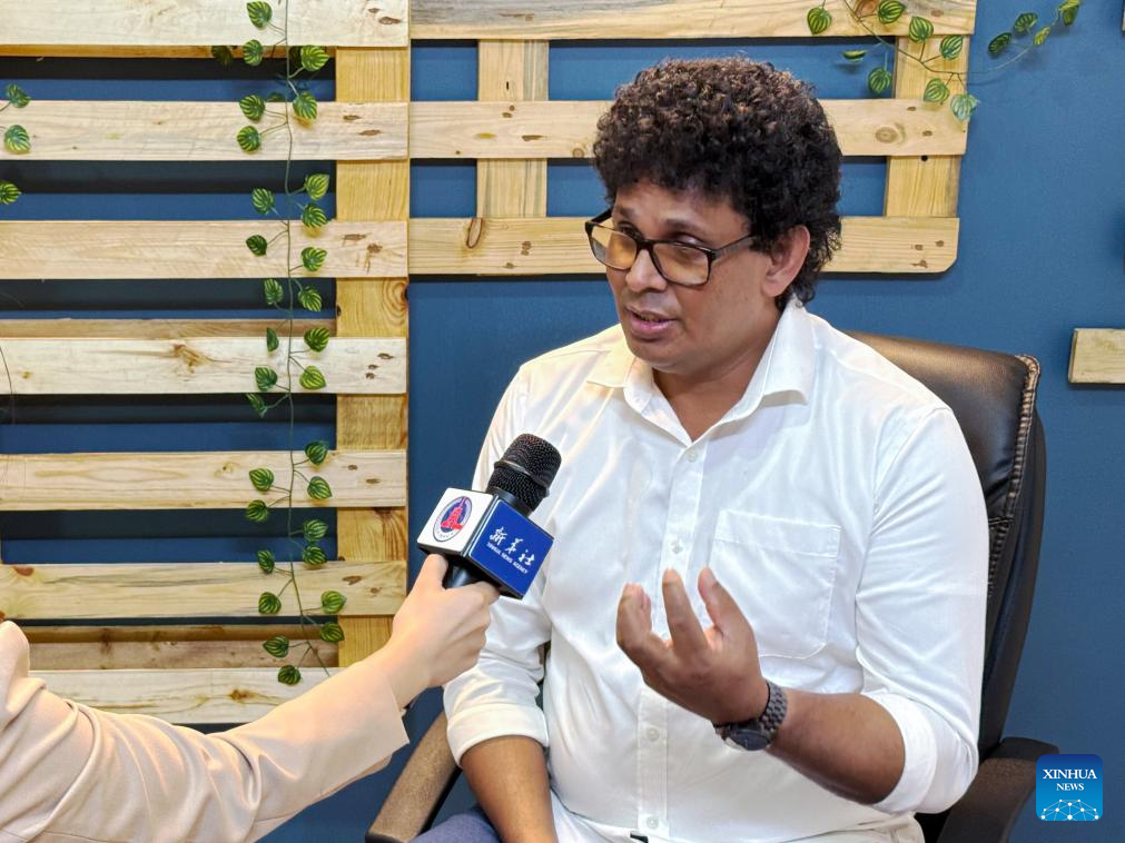 Wasantha Samarasinghe, Sri Lankan minister of trade, commerce, food security and cooperative development, receives an interview with Xinhua News Agency in Colombo, Sri Lanka, June 27, 2025. (Xinhua/Wu Yue)