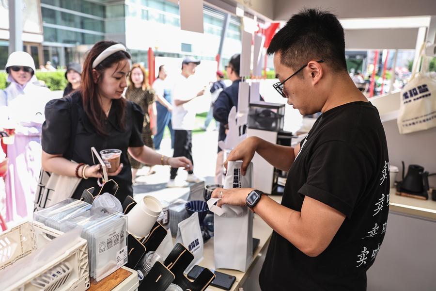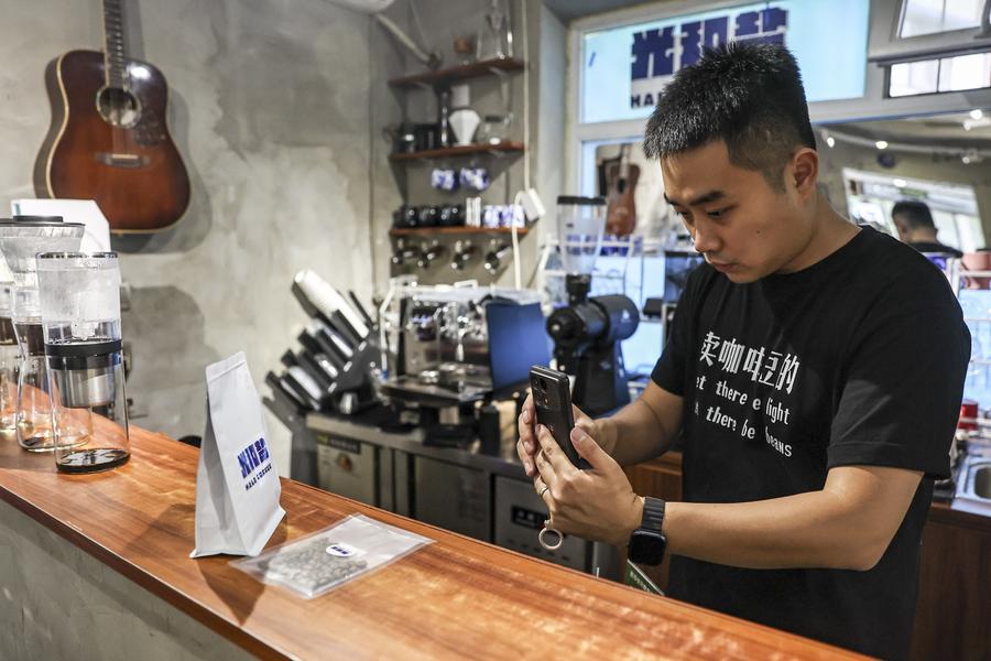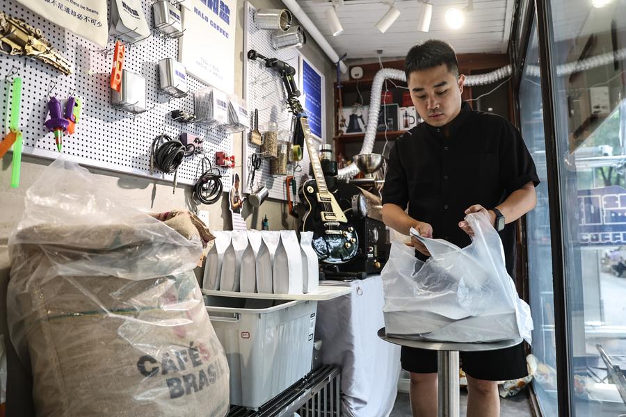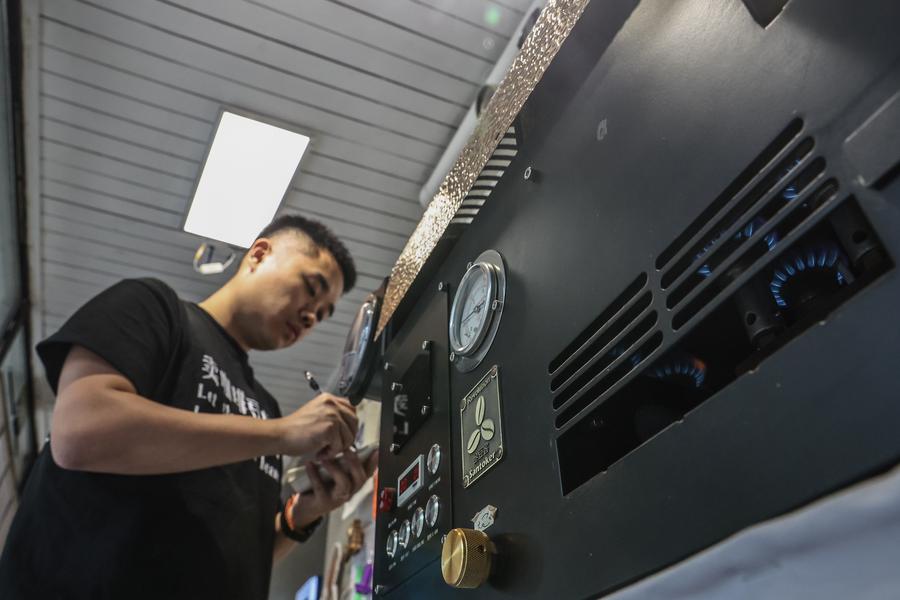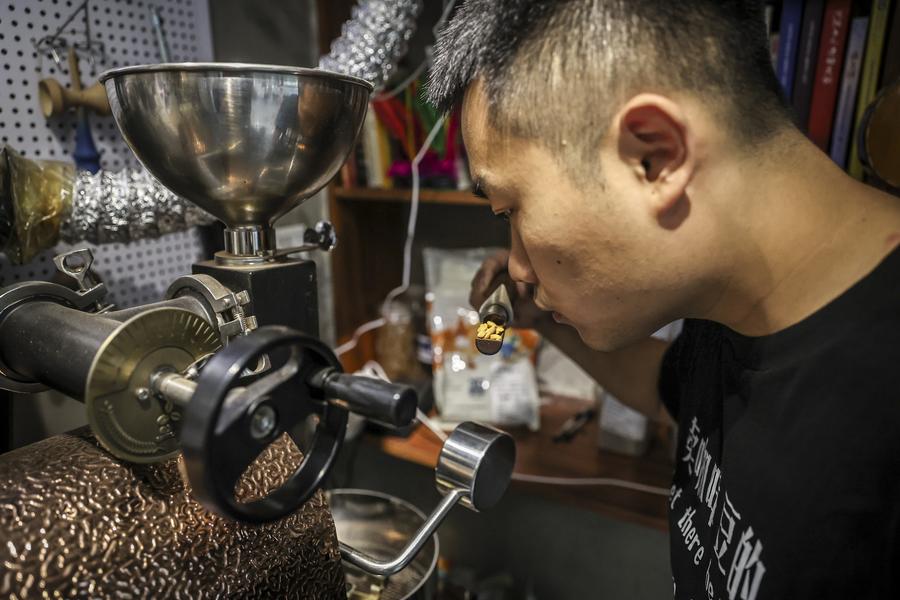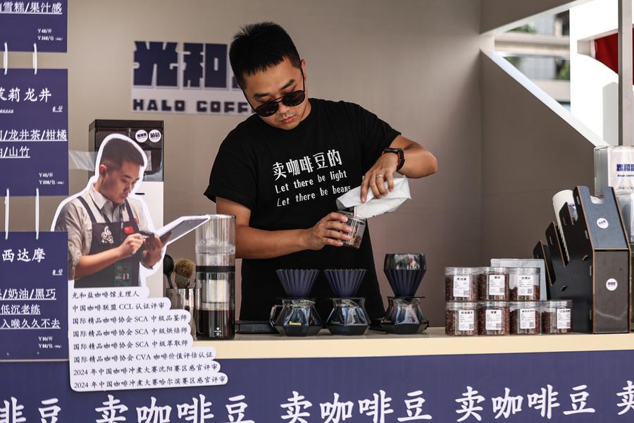 SHENYANG, July 1 (Xinhua) -- Liu Jiadi's journey as a coffee roaster in Shenyang, capital city of northeast China's Liaoning Province, comes from his adaptation to the evolving coffee market. As the demand for specialty coffee grows, Liu has transformed his shop into a dual-purpose space, serving as a cafe and a roasting studio. His commitment to quality and customization has allowed him to cater to both individual customers and specialty coffee shops.