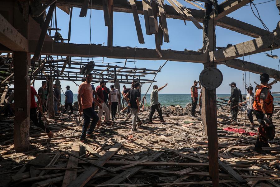 Palestinian security officials and eyewitnesses told Xinhua that an Israeli aircraft fired at least one missile at the cafe west of the al-Shati refugee camp.