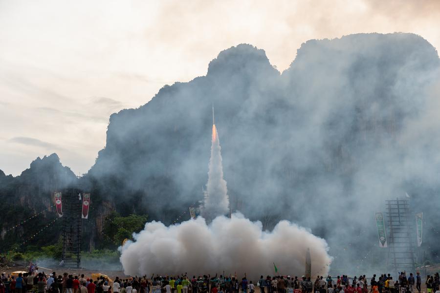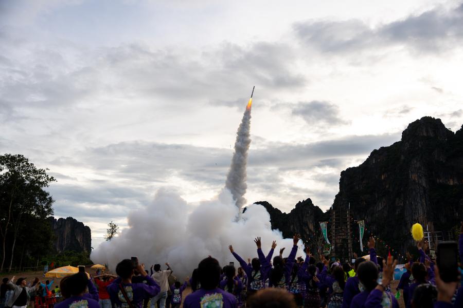 VIENTIANE, July 1 (Xinhua) -- As the rainy season begins, people across Laos celebrate the annual Rocket Festival with cheers and rockets soaring into the sky -- a joyful gathering of friends and families embracing the green season and hoping for a rich harvest.