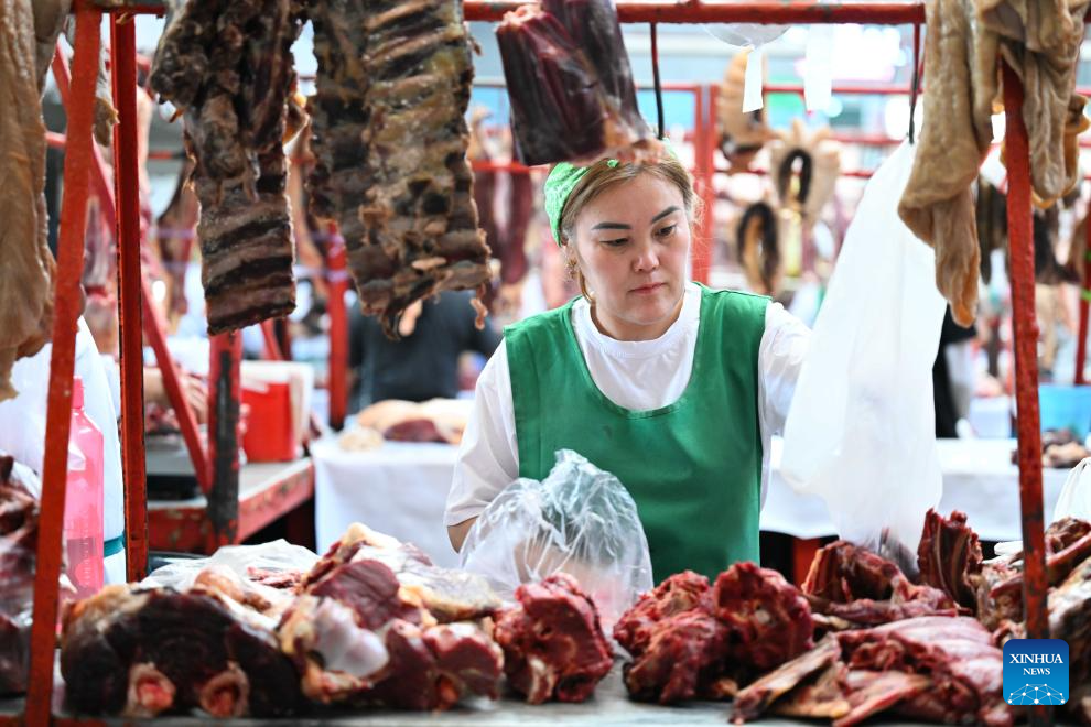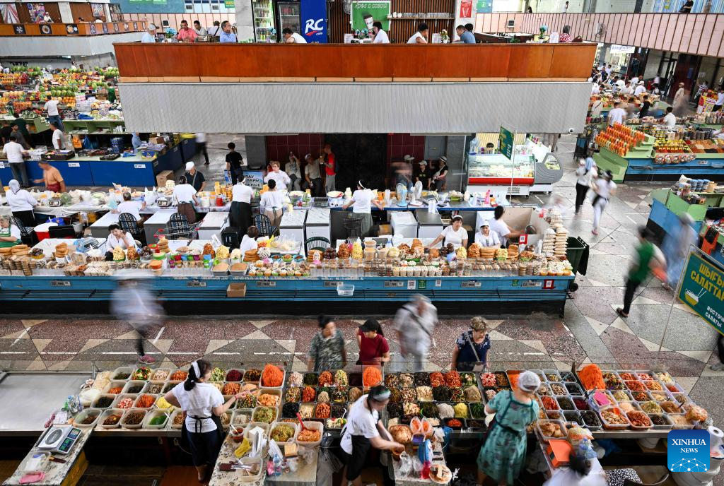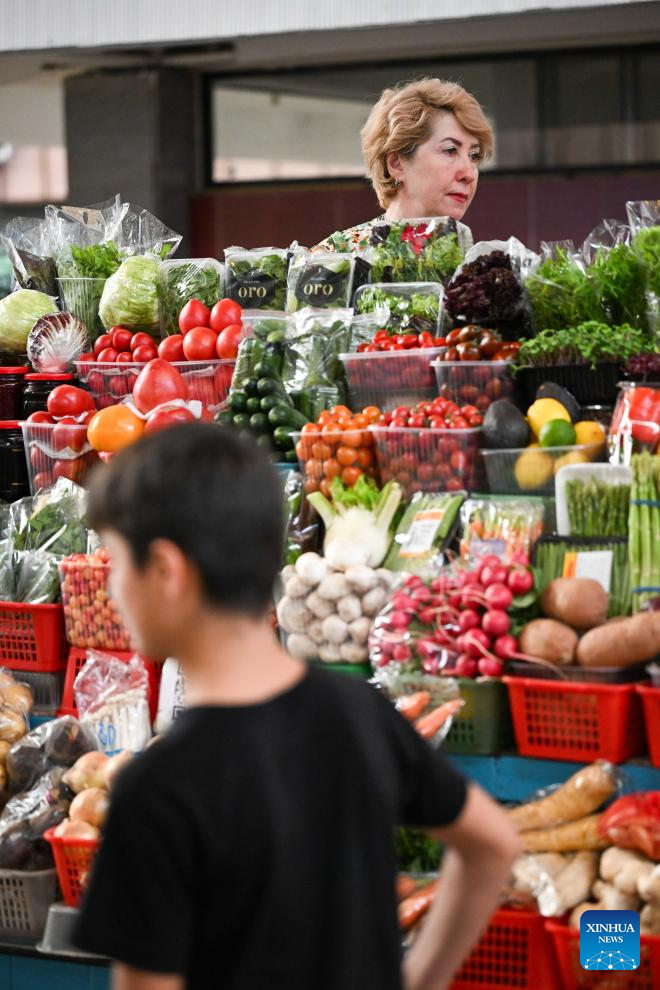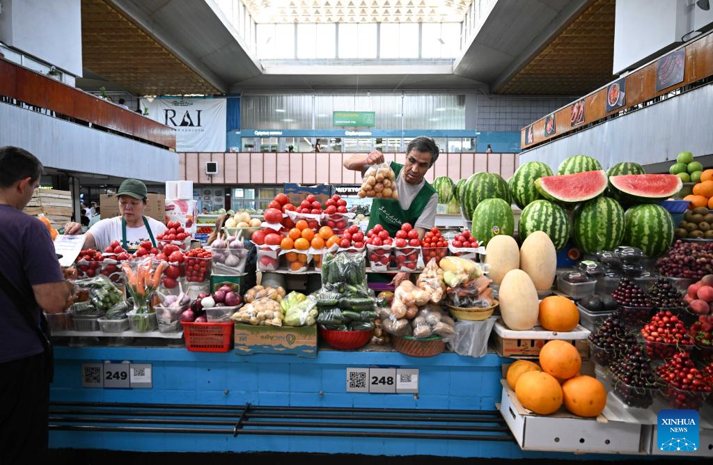 This photo taken on July 2, 2025 shows the Green Bazaar in Almaty, Kazakhstan. Green Bazaar, one of the most important markets in Almaty, is a well-known marketplace not only in Kazakhstan, but also across Central Asia. (Xinhua/Li Renzi)