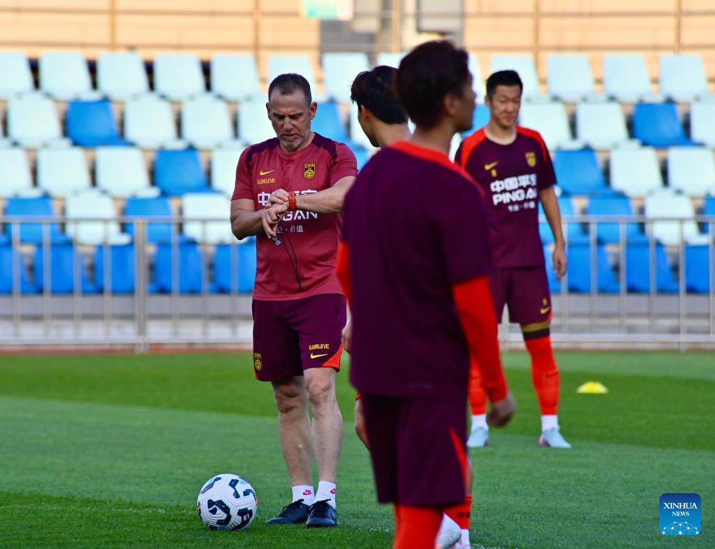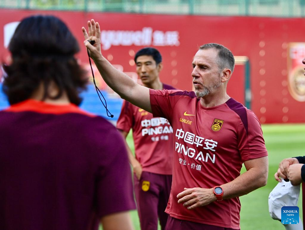 Dejan Djurdjevic (C), caretaker manager of Chinese national men's football team attends a training session in Dalian, northeast China's Liaoning Province, July 2, 2025. (Xinhua/Wu Qinghao)