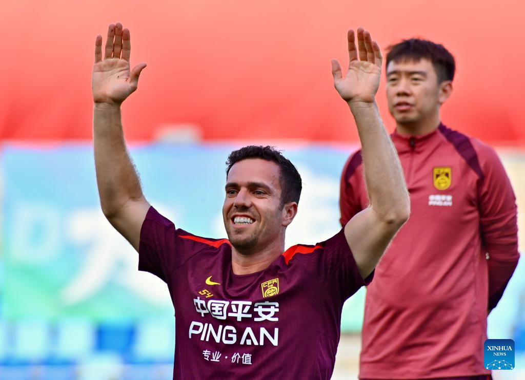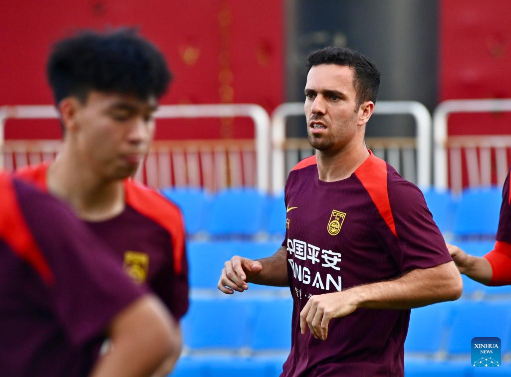 Sai Erjiniao (R) of Chinese national men's football team attends a training session in Dalian, northeast China's Liaoning Province, July 2, 2025. (Xinhua/Wu Qinghao)
