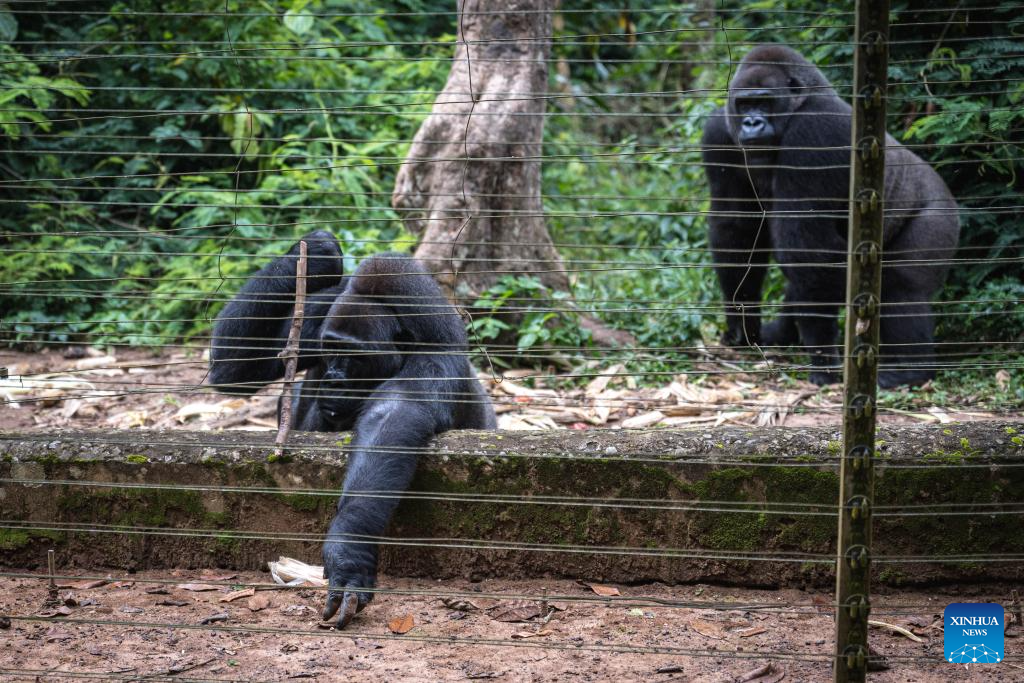 This photo taken on July 1, 2025 shows western lowland gorillas at the Mofu Primate Sanctuary in Yaounde, the capital of Cameroon. Located in the south of Yaounde, the Mofu Primate Sanctuary aims to protect primates that have been maimed or left alone due to illegal hunting and trading. (Xinhua/Wang Guansen)