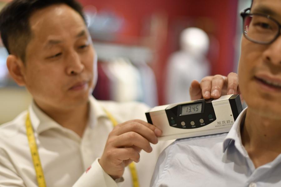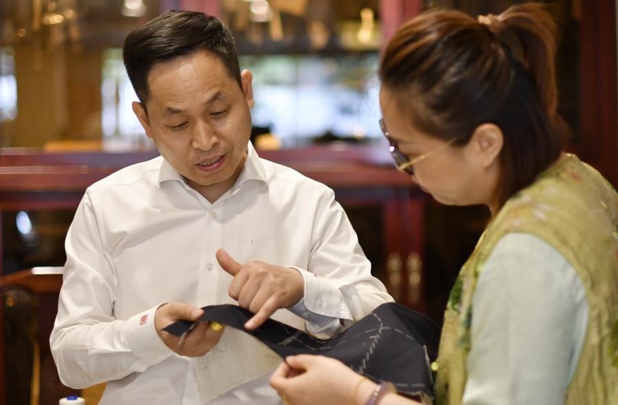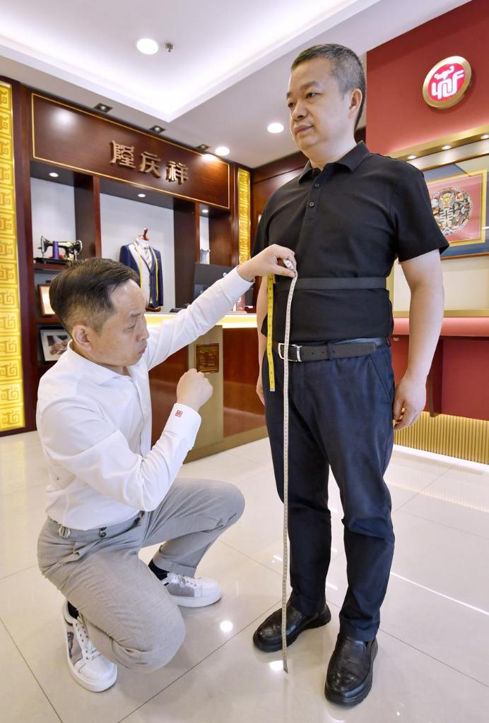 Li Wei (L) and his colleague exchange on the sewing skills for customized western-style clothes at the flagship store of Longqingxiang in Beijing, capital of China, June 10, 2025. (Xinhua/Li Xin)This photo taken on June 10, 2025 shows an embroidered Chinese character "Xi", which means happiness, for customized clothes displayed at the flagship store of Longqingxiang in Beijing, capital of China. (Xinhua/Li Xin)Li Wei sews a set of customized western-style clothes at the flagship store of Longqingxiang in Beijing, capital of China, June 10, 2025. (Xinhua/Li Xin)Li Wei sews a set of customized western-style clothes at the flagship store of Longqingxiang in Beijing, capital of China, June 10, 2025. (Xinhua/Li Xin)Li Wei sews a set of customized western-style clothes at the flagship store of Longqingxiang in Beijing, capital of China, June 10, 2025. (Xinhua/Li Xin)Li Wei (L) measures the body sizes for a customer at the flagship store of Longqingxiang in Beijing, capital of China, June 10, 2025. (Xinhua/Li Xin)Li Wei sews a set of customized western-style clothes at the flagship store of Longqingxiang in Beijing, capital of China, June 10, 2025. (Xinhua/Li Xin)Li Wei (L) uses his "27-step" body size measuring method to serve a customer at the flagship store of Longqingxiang in Beijing, capital of China, June 10, 2025. (Xinhua/Li Xin)Li Wei measures the body sizes for a customer at the flagship store of Longqingxiang in Beijing, capital of China, June 10, 2025. (Xinhua/Li Xin)Li Wei (R) introduces clothing materials to a customer at the flagship store of Longqingxiang in Beijing, capital of China, June 10, 2025. (Xinhua/Li Xin)Li Wei demonstrates traditional sewing skills on western-style clothes at the flagship store of Longqingxiang in Beijing, capital of China, June 10, 2025. (Xinhua/Li Xin)Li Wei (R) introduces western-style clothes to customers at the flagship store of Longqingxiang in Beijing, capital of China, June 10, 2025. (Xinhua/Li Xin)Li Wei (1st R) introduces western-style clothes to customers at the flagship store of Longqingxiang in Beijing, capital of China, June 10, 2025.(Xinhua/Li Xin)