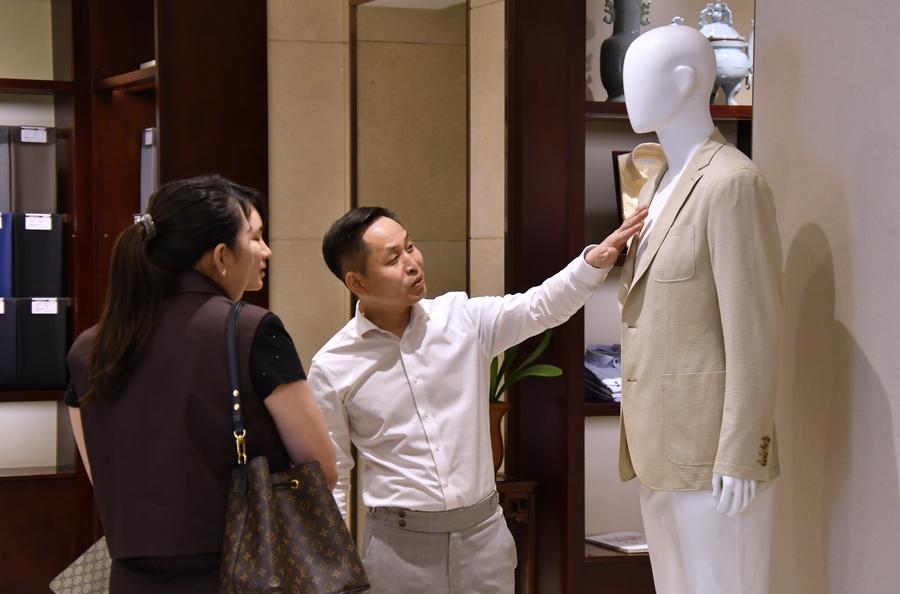This photo taken on June 10, 2025 shows the flagship store of Longqingxiang in Beijing, capital of China. (Xinhua/Li Xin)This undated file photo shows a tailor making a set of customized western-style clothes at the production base of Longqingxiang in Zhengzhou, central China's Henan Province. (Xinhua)This photo taken on June 24, 2025 shows customized buttons displayed at the flagship store of Longqingxiang in Beijing, capital of China. (Xinhua/Li Xin)This photo taken on June 24, 2025 shows an embroidered pattern on a set of customized western-style clothes displayed at the flagship store of Longqingxiang in Beijing, capital of China. (Xinhua/Li Xin)This photo taken on June 10, 2025 shows clothing materials displayed at the flagship store of Longqingxiang in Beijing, capital of China. (Xinhua/Li Xin)This undated file photo shows a craftsman tailoring a piece of cloth at the production base of Longqingxiang in Zhengzhou, central China's Henan Province. (Xinhua)This photo taken on June 10, 2025 shows ancient tools for making clothes displayed at the flagship store of Longqingxiang in Beijing, capital of China.(Xinhua/Li Xin)