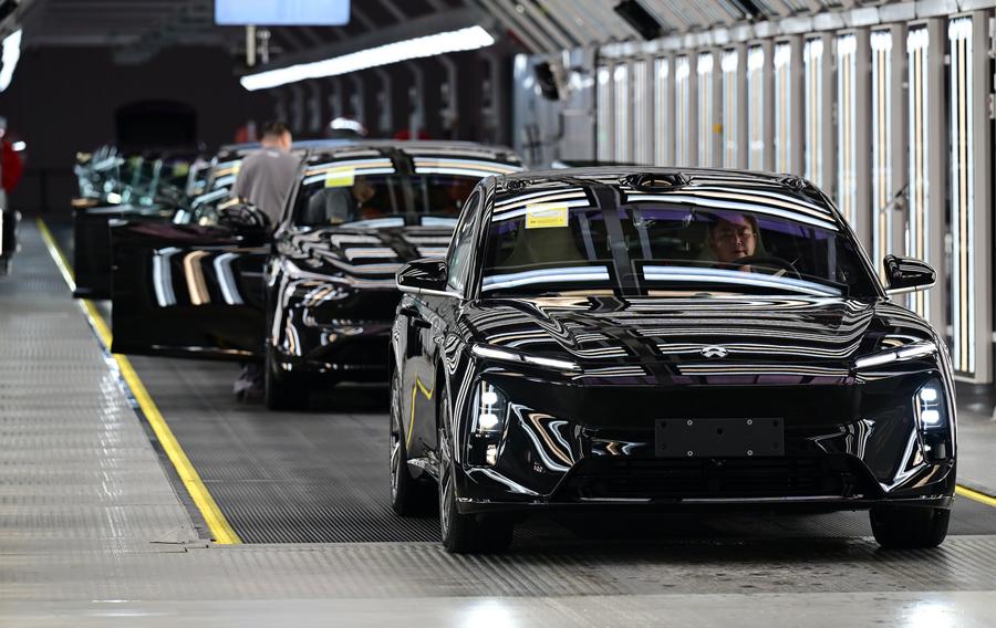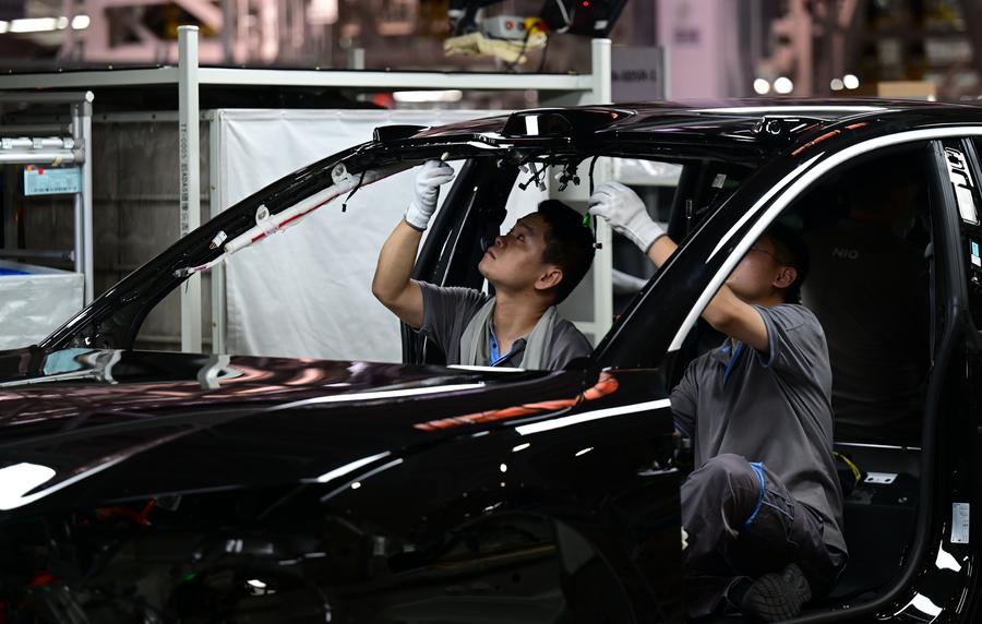 This photo shows a production line of the NIO Second Advanced Manufacturing Base in Hefei, east China's Anhui Province, July 1, 2025. (Xinhua/Zhou Mu)A new energy vehicle demonstrates battery swapping at the NIO Second Advanced Manufacturing Base in Hefei, east China's Anhui Province, July 1, 2025. (Xinhua/Zhou Mu)This photo shows a "Rubik's Cube" garage that accommodates vehicle frames at the NIO Second Advanced Manufacturing Base in Hefei, east China's Anhui Province, July 1, 2025. (Xinhua/Zhou Mu)This photo shows a production line of the NIO Second Advanced Manufacturing Base in Hefei, east China's Anhui Province, July 1, 2025. (Xinhua/Zhou Mu)Media professionals learn about a new energy vehicle at the NIO Second Advanced Manufacturing Base in Hefei, east China's Anhui Province, July 1, 2025. (Xinhua/Zhou Mu)This undated photo shows an aerial view of the Maextro Super Factory in Feixi County, east China's Anhui Province. (Xinhua)This photo shows a battery pack production line of Octillion Energy Holdings, Inc. in Hefei, east China's Anhui Province, June 30, 2025. (Xinhua/Zhou Mu)This photo shows a battery pack production line of Octillion Energy Holdings, Inc. in Hefei, east China's Anhui Province, June 30, 2025. (Xinhua/Zhou Mu)This undated photo shows an automated production line of the Maextro Super Factory in Feixi County, east China's Anhui Province. (Xinhua)An aerial drone photo shows new energy vehicles to be exported at the Paihe Port railway logistics base in Hefei, east China's Anhui Province, June 17, 2025. (Xinhua/Zhou Mu)■