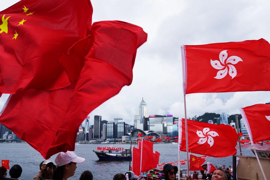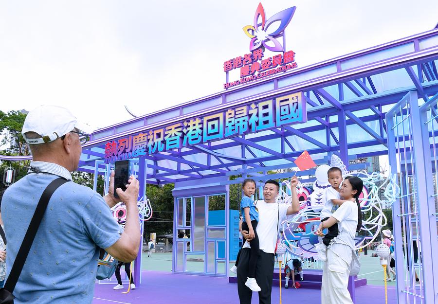HONG KONG, July 2 (Xinhua) -- Hong Kong was filled with a festive and harmonious atmosphere on Tuesday on the 28th anniversary of its return to the motherland.