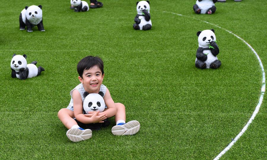 A three-day event at Victoria Park featured a popular Panda-themed exhibition, showcasing a two-meter-tall panda sculpture surrounded by 100 smaller ones, drawing visitors eager to capture the moment.