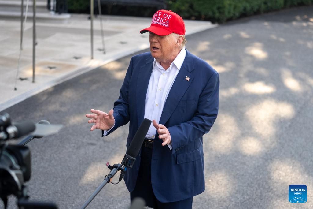 U.S. President Donald Trump speaks to the press at the White House in Washington, D.C., the United States, on July 1, 2025. Trump said on Tuesday that Israel has agreed to the necessary conditions to finalize a 60-day ceasefire to end the conflict in Gaza. (Xinhua/Hu Yousong)