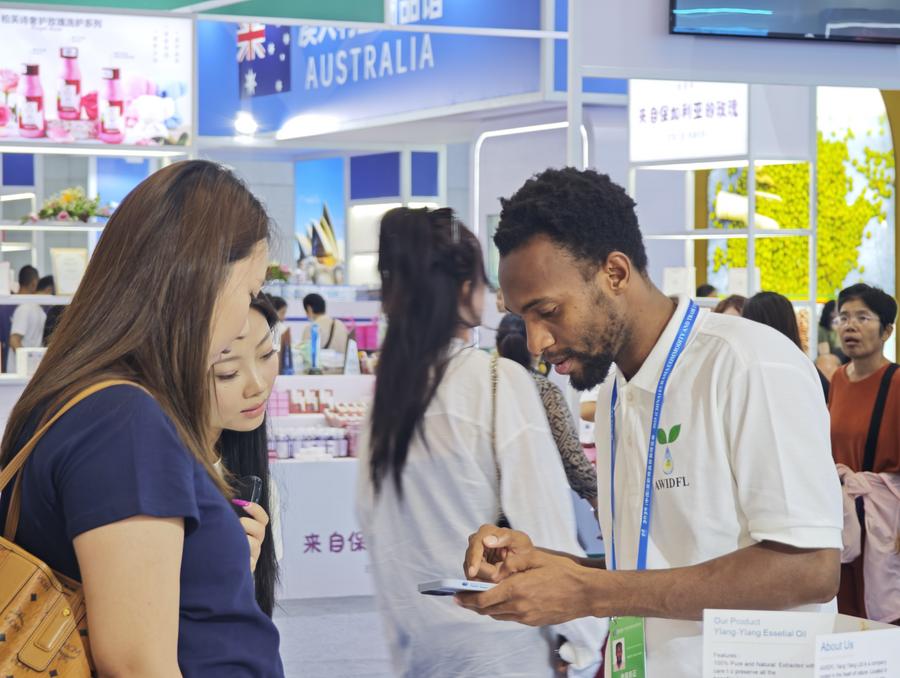 URUMQI, July 2 (Xinhua) -- At the 2025 (China) Eurasia Commodity and Trade Expo in Urumqi, capital of northwest China's Xinjiang Uygur Autonomous Region, 28-year-old Abdallah Daniel Abdallah greets visitors in fluent Mandarin at a pavilion filled with the tropical scent of ylang-ylang flowers, proudly showcasing essential oils from his island homeland.