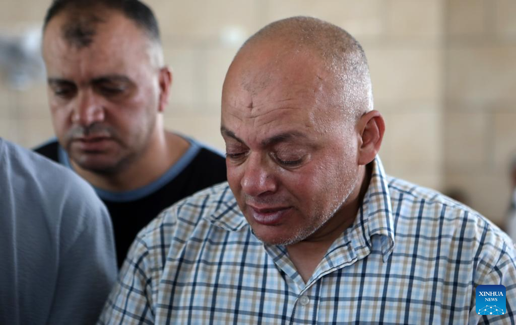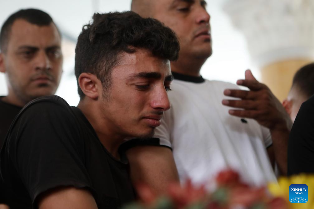 Palestinians mourn during the funeral of Palestinian teenager Amjad Abu Awad, who was killed by Israeli army fire in the city of Ramallah, in the town of Yatta, south of the West Bank city of Hebron, July 1, 2025. Two Palestinians, including a teenager, were killed by Israeli army fire and 45 others arrested in the West Bank on Tuesday, Palestinian sources said.