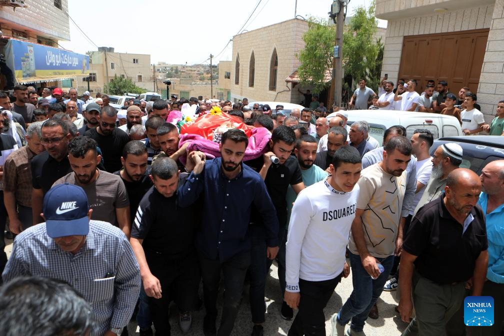 Mourners carry the body of Palestinian teenager Amjad Abu Awad, who was killed by Israeli army fire in the city of Ramallah, during his funeral in the town of Yatta, south of the West Bank city of Hebron, July 1, 2025. Two Palestinians, including a teenager, were killed by Israeli army fire and 45 others arrested in the West Bank on Tuesday, Palestinian sources said.