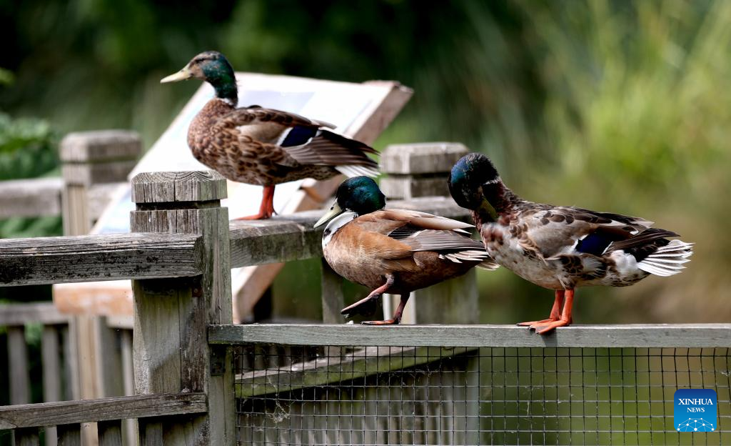 This photo taken on June 20, 2025 shows mallards at London Wetland Centre in London, Britain. As an important part of the world's ecosystem, wetland plays a huge role in many aspects including ecology, environment, economy and society. (Xinhua/Li Ying)