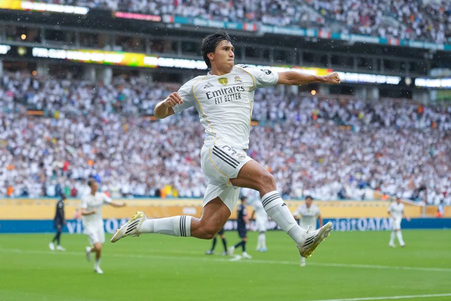 A fireboat of the Hong Kong Special Administrative Region government performs a water gate ceremony for the Chinese People's Liberation Army Navy fleet in Hong Kong, south China, July 3, 2025. A fleet of the Chinese People's Liberation Army Navy led by the aircraft carrier Shandong arrived here on Thursday morning. (Photo by Jia Xiaopeng/Xinhua)People visit the Memorial Hall of the Victims in Nanjing Massacre by Japanese Invaders, in Nanjing, east China's Jiangsu Province, July 2, 2025. A "lights out" mourning ceremony for two survivors of the Nanjing Massacre who passed away this year was held Wednesday in Nanjing. This has brought the number of living registered survivors of the Massacre down to 26. (Photo by Liu Zhenrui/Xinhua)An aerial drone photo taken on July 2, 2025 shows an excavator clearing the road in Taiping Town of Xixia County, Nanyang City, central China's Henan Province. Torrential downpours in Taiping and Erlangping triggered a sudden surge in the water level in the downstream of a local river in Xixia County on Monday, damaging infrastructure and leaving some residents trapped. Following the flooding, rescue efforts were immediately implemented, with two people successfully rescued. Further search and rescue efforts are underway in the quest to locate the three missing individuals. (Xinhua/Hao Yuan)This photo taken on July 2, 2025 shows an exhibition area of the 2025 Global Digital Economy Conference in Beijing, capital of China. With the theme "Building a Digital-Friendly City," the 2025 Global Digital Economy Conference opened here on Wednesday. (Xinhua/Zhang Chenlin)Liu Qiao, dean of Peking University's Guanghua School of Management, turns the tassel for a graduate at Peking University in Beijing, capital of China, July 2, 2025. Peking University held the graduation ceremony on Wednesday and conferred bachelor's degrees to more than 4,000 graduates. (Xinhua/Chen Shuo)A drone photo taken on Jan. 17, 2025 shows domestic and foreign tourists enjoying hot spring bath at Shenyang, northeast China's Liaoning Province. In recent years, Liaoning Province has actively built a facilitation system for cross-border cultural and tourism exchanges. It has participated in international tourism promotion activities, striving to enhance the quality of foreign-related tourism services and promote the high-quality development of inbound tourism. (Xinhua/Li Gang)An aerial drone photo taken on July 2, 2025 shows the smart glass greenhouses at a modern agricultural industrial park in Fuyuan City, northeast China's Heilongjiang Province. Located in the easternmost part of China, Fuyuan City is dubbed "the east pole of Huaxia (historical concept representing China)." In recent years, the city has continuously enhanced agricultural standardization and industrialization, vigorously developing modern agriculture that incorporates digital intelligence and ecological sustainability, a move expected to bring prosperity to the border area and improve locals' incomes. (Xinhua/Zhang Tao)Black-necked cranes are seen at a reservoir in Lhunzhub County of Lhasa, southwest China's Xizang Autonomous Region, March 8, 2025. The black-necked crane, a species under first-class state protection in China, is the only crane that breeds and lives in high-altitude regions worldwide. The black-necked crane not only symbolizes auspiciousness and beauty but also serves as a vital link in the ecological chain, reflecting the condition of high-altitude wetlands through their survival and migration patterns. (Xinhua/Tenzin Nyida)A Brazil-made BYD new energy vehicle rolls off the line at BYD's production base in Camacari, Bahia State, Brazil, July 1, 2025. Chinese automaker BYD held a ceremony marking its first Brazil-made passenger vehicle rolling off the line at its factory in Camacari on Tuesday. (Photo by Lucio Tavora/Xinhua)Children cool off in water during a heatwave in Haarlem, the Netherlands, on July 2, 2025. The Netherlands has been hit by its first official heat wave in three years, prompting the Royal Netherlands Meteorological Institute (KNMI) to issue an orange code alert for extreme heat in the country's southeastern region. (Photo by Sylvia Lederer/Xinhua)Gonzalo Garcia of Real Madrid celebrates scoring during the round of 16 match between Spain's Real Madrid and Italy's Juventus FC at the FIFA Club World Cup 2025 at the Hard Rock Stadium, Miami, Florida, the United States, July 1, 2025. (Xinhua/Xu Chang)■