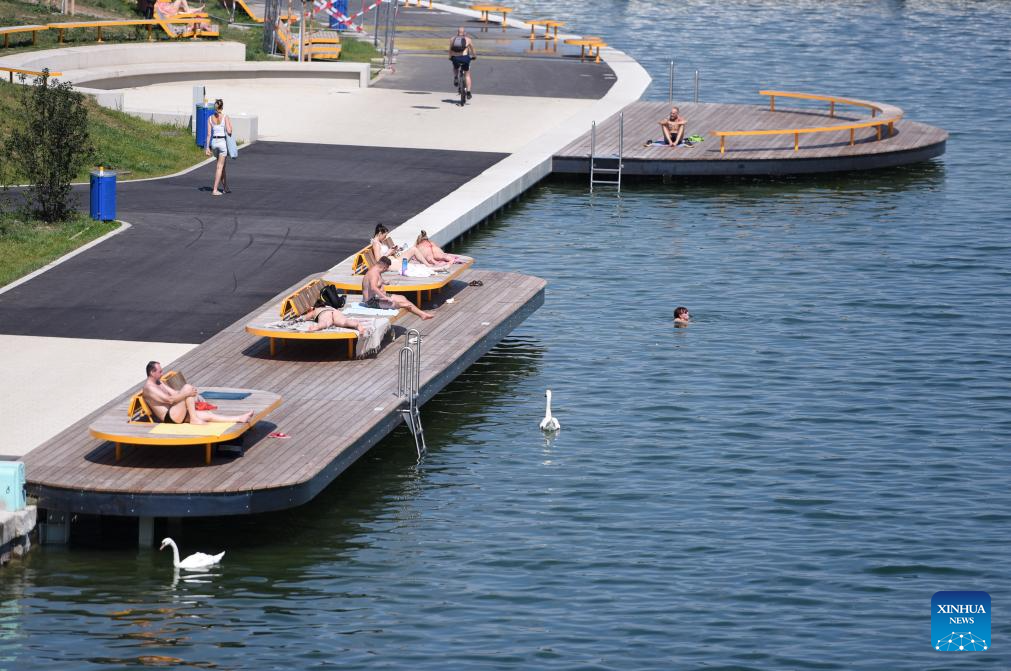 People cool off along the Danube river during a heatwave in Vienna, Austria, July 3, 2025. (Xinhua/He Canling)