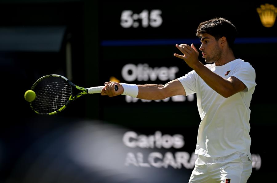Two-time defending champion Carlos Alcaraz, who is set to pair with Raducanu in mixed doubles at the US Open this year, had little trouble defeating 733rd-ranked university player Oliver Tarvet 6-1, 6-4, 6-4.