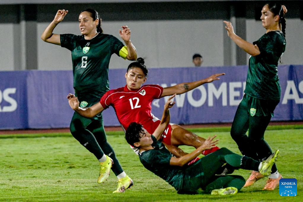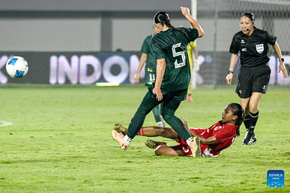 Zahra Muzdalifah (2nd L) of Indonesia competes during the AFC Women's Asian Cup 2026 Qualifiers Group D football match between Indonesia and Pakistan in Tangerang, Indonesia, July 2, 2025. (Xinhua/Agung Kuncahya B.)