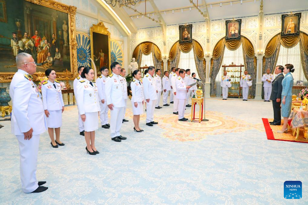 BANGKOK, July 3 (Xinhua) -- Thailand's King Maha Vajiralongkorn swore in a new cabinet on Thursday following a royal endorsement of the ministerial lineup earlier this week.