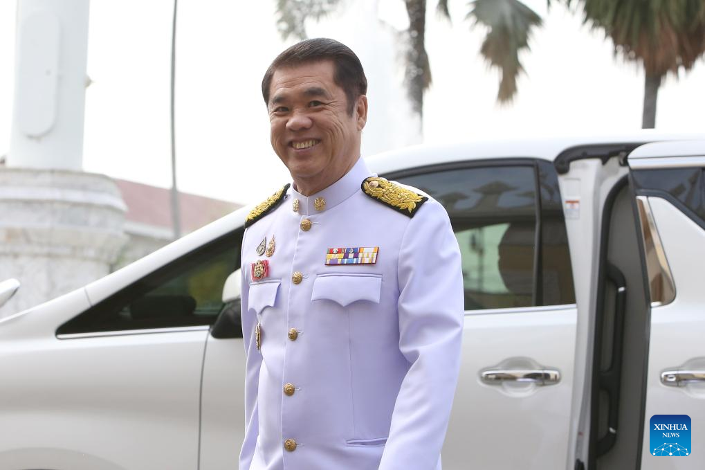 Deputy Prime Minister Suriya Juangroongruangkit, in his capacity as acting prime minister, arrives at the government house in Bangkok, Thailand, July 3, 2025. Deputy Prime Minister Suriya Juangroongruangkit, in his capacity as acting prime minister, led 14 newly appointed and reassigned ministers in taking the oath of allegiance before the king, a formality required before assuming their roles. (Xinhua/Rachen Sageamsak)
