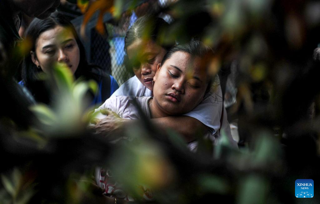 Family members and relatives of passengers aboard a capsized ship wait for updates at Ketapang Port in Banyuwangi, East Java, Indonesia, July 3, 2025. Six people were confirmed dead, 24 remain missing and 35 others have survived after a passenger ship sank in Indonesia's Bali Strait on Wednesday night, according to Gusti Ayu Ketut Wijayanti, spokesperson for the Search and Rescue Office in Bali. (Photo by Sahlan Kurniawan/Xinhua)