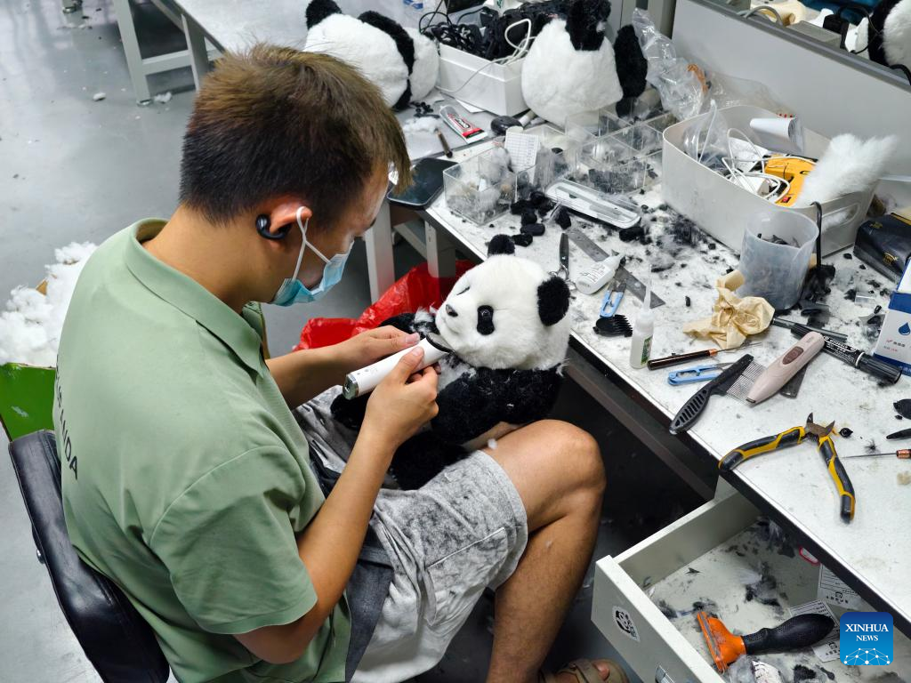 Yang Yinyu, CTO of SeeU Panda and a craftsman with 24 years of experience in traditional handcrafts, said that pandas have been his most challenging project. "We kept refining the expressions. Every panda's eyes and mouth lines are different, which dictates their first impression on us," he said. "Hua Hua looks shy, and Qi Zai is more playful," he added, referring to the world's only captive brown giant panda.