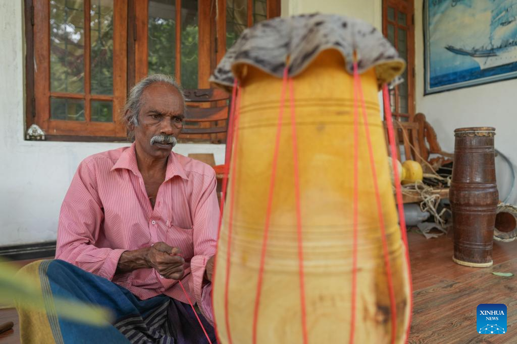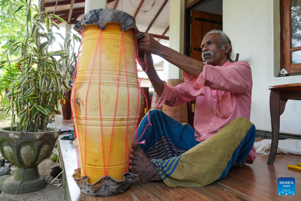 A person assembles a traditional drum in Kadugannawa, Sri Lanka, July 3, 2025. The central region of Sri Lanka, especially Kadugannawa, is famous for the making and use of traditional wooden drums, which play an important role in Sri Lankan rituals and dances. (Photo by Thilina Kaluthotage/Xinhua)