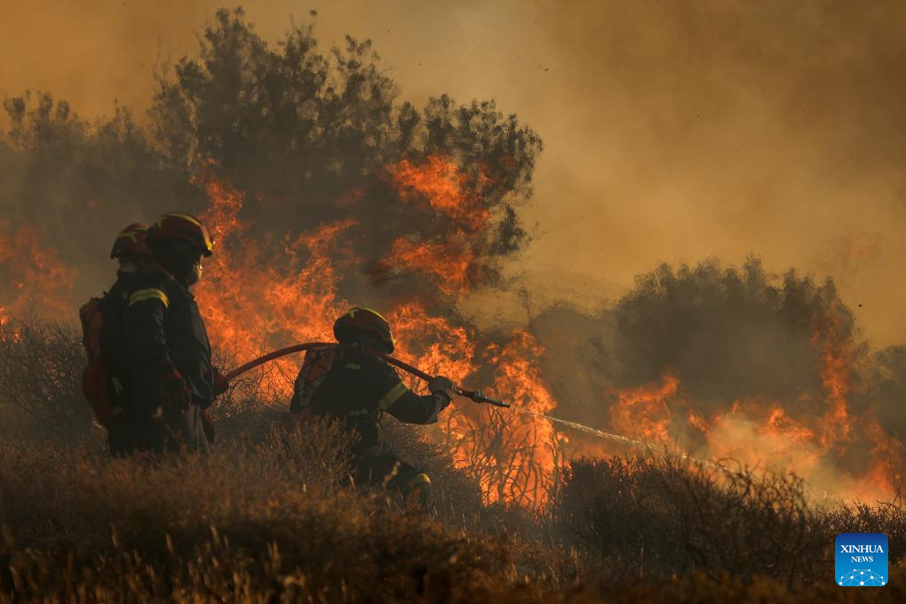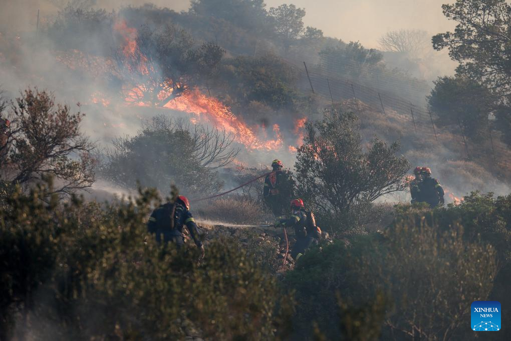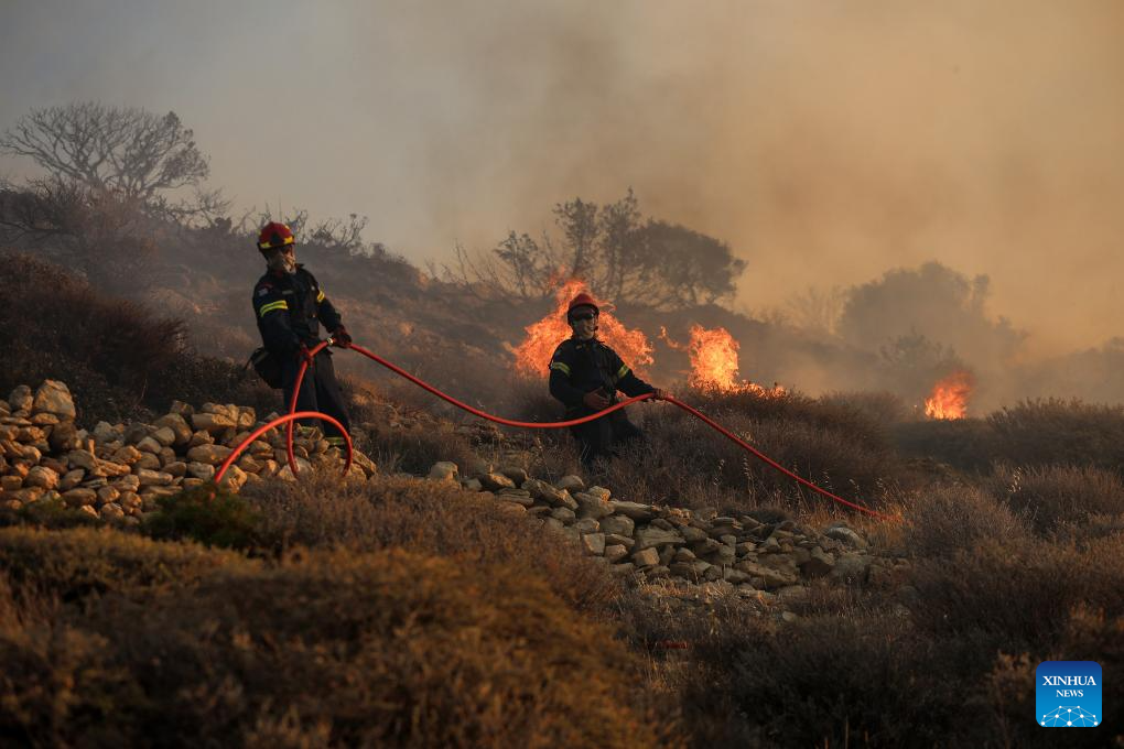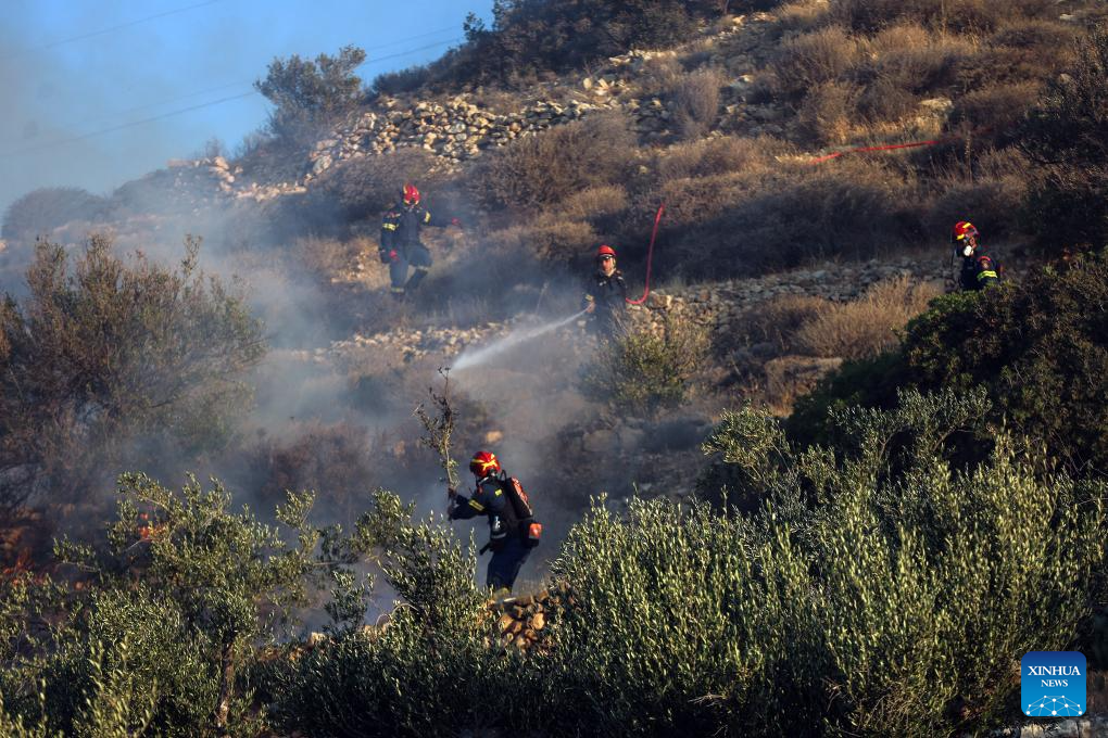 ATHENS, July 3 (Xinhua) -- Two major wildfires, one on the island of Crete and another near the port town of Rafina east of Athens, have forced the evacuation of more than 5,000 residents and tourists, Greek authorities said on Thursday.