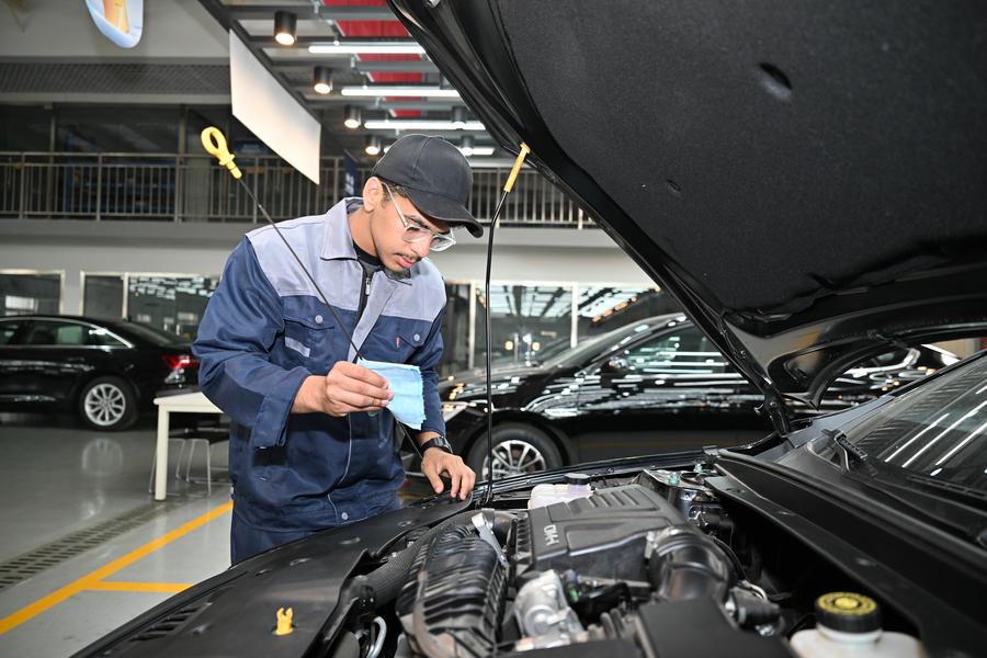 "The training equipment in both countries is highly compatible. China's new energy vehicle industry is thriving, and here I can learn cutting-edge knowledge and hands-on experience," Salah said.