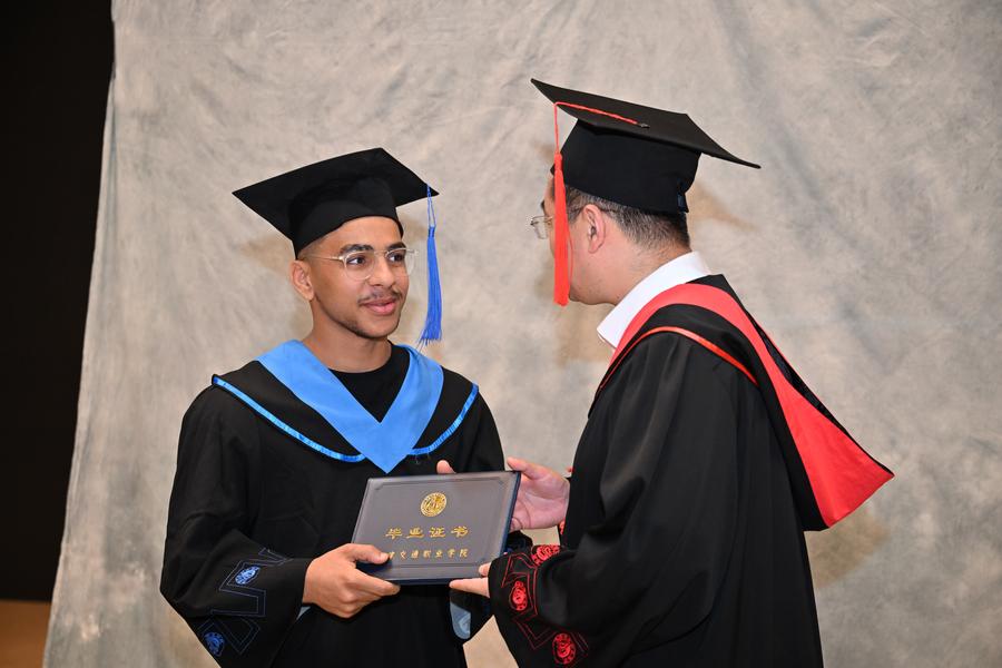 In 2024, after graduating from the Luban Workshop at the Advanced Technical School for Maintenance Technology in Cairo, Salah chose to continue his studies in new energy vehicle technology and came to Tianjin.