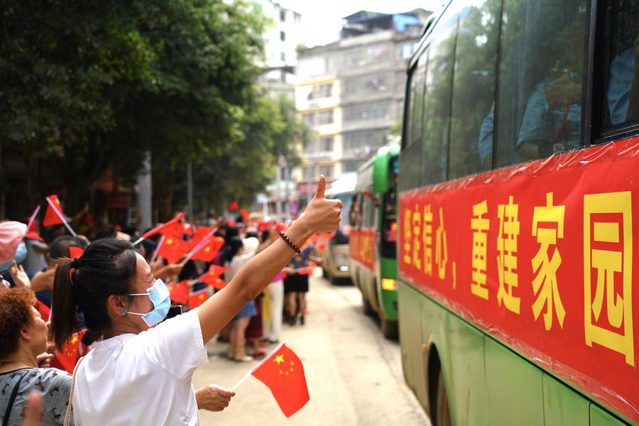 A drone photo shows officers and soldiers spelling out Chinese characters "secure country, sweet home" on aircraft carrier Shandong's flight deck in Hong Kong waters, south China, July 3, 2025. A fleet of the Chinese People's Liberation Army (PLA) Navy led by the aircraft carrier Shandong arrived in the Hong Kong Special Administrative Region (HKSAR) on Thursday morning, kicking off a five-day visit. The aircraft carrier and the Yan'an missile destroyer were anchored near the west end of the Victoria Harbor, while the Zhanjiang missile destroyer and the Yuncheng missile frigate docked at the PLA Hong Kong Garrison's naval base in Stonecutters Island. This is the Shandong's first visit to Hong Kong. From Friday to Sunday, the Shandong, the Zhanjiang and the Yuncheng will host open tours, lectures, drill demonstrations and other exchange activities. (Photo by Pu Haiyang/Xinhua)A local gives a thumb-up to rescuers as they leave after the mission was accomplished, in Rongjiang County, southwest China's Guizhou Province, July 3, 2025. The flood control and rescue teams from various places that had rushed to Rongjiang County began to leave in an orderly manner on Thursday. Local residents spontaneously took to the streets to bid farewell to the rescue teams and express their gratitude. Rongjiang County in southwest China's Guizhou Province, widely known as the birthplace of the Village Super League, or Cun Chao, is beginning post-disaster recovery after being hit by two severe floods in less than a week. As floodwaters receded, (Photo by Yang Wukui/Xinhua)An aerial drone photo taken on July 3, 2025 shows the Heishan Gorge Yellow River grand bridge in Zhongwei City, northwest China's Ningxia Hui Autonomous Region. The two sides of the Heishan Gorge Yellow River grand bridge were joined together on Thursday, laying a solid foundation for the bridge's completion within this year. The 1,539-meter-long grand bridge, with a span of 240 meters, is a major project of the highway linking Zhongwei of northwest China's Ningxia Hui Autonomous Region and Mengjiawan of northwest China's Shaanxi Province. (Xinhua/Feng Kaihua)An aerial drone photo taken on July 3, 2025 shows a container yard of an automated container terminal of Qinzhou Port in Qinzhou City, south China's Guangxi Zhuang Autonomous Region. Cargo volume on the New International Land-Sea Trade Corridor surged 76.9 percent year on year to 746,000 twenty-foot equivalent units (TEUs) in the first six months of this year, according to the China Railway Nanning Group. The corridor now operates 14 fixed train routes connecting Beibu Gulf Port in Guangxi and Zhanjiang Port in neighboring Guangdong Province to major inland hubs including Chongqing, Chengdu, Guiyang, Lanzhou, Huaihua and Xi'an. Goods transported through the trade corridor via intermodal rail-sea service now cover 1,236 categories, 79 more than a year earlier, spanning electronics, vehicles and auto parts, machinery, household appliances, and food. (Xinhua/Zhang Ailin)A Russian tourist interacts with a humanoid robot at a market in Dongji (meaning "eastmost of China") Square in Fuyuan City, northeast China's Heilongjiang Province, July 2, 2025. (Xinhua/Zhang Tao)This photo taken on July 3, 2025 shows a view of the LEGOLAND Shanghai Resort in Shanghai, east China. Located in Shanghai's Jinshan District, the 318,000-square-meter LEGOLAND Shanghai Resort will officially open on July 5. (Xinhua/Ding Ting)People unload medical supplies from a truck at the Tirunesh-Beijing Hospital, on the outskirts of Addis Ababa, Ethiopia, on July 2, 2025. The 25th batch of the Chinese medical team in Ethiopia has donated much-needed medical supplies to the Tirunesh-Beijing Hospital, also known as the Ethio-China Friendship Hospital, located on the outskirts of Addis Ababa. (Xinhua/Michael Tewelde)A man cools off at a fountain on Piazza del Campo in Siena, Italy, July 2, 2025. This week, Italy once again finds itself at the epicenter of a growing climate emergency sweeping across Europe. A persistent and deadly heatwave has gripped much of the country, prompting red alerts in major cities. (Photo by Alberto Lingria/Xinhua)Firefighters battle the flames that keep burning forests and farmland near Ierapetra on the island of Crete, Greece, on July 3, 2025. Two major wildfires, one on the island of Crete and another near the port town of Rafina east of Athens, have forced the evacuation of more than 5,000 residents and tourists, Greek authorities said on Thursday. (Photo by Stefanos Repanis/Xinhua)Family members and relatives of passengers aboard a capsized ship wait for updates at Ketapang Port in Banyuwangi, East Java, Indonesia, July 3, 2025. Six people were confirmed dead, 24 remain missing and 35 others have survived after a passenger ship sank in Indonesia's Bali Strait on Wednesday night, according to Gusti Ayu Ketut Wijayanti, spokesperson for the Search and Rescue Office in Bali. (Photo by Sahlan Kurniawan/Xinhua)Flowers and tributes to Diogo Jota are left outside Anfield Stadium in Liverpool, Britain, July 3, 2025. Liverpool's Portuguese international forward Diogo Jota and his brother Andre died in the early hours of Thursday morning in a car accident in north-east Spain, according to Spanish authorities. (Xinhua)■