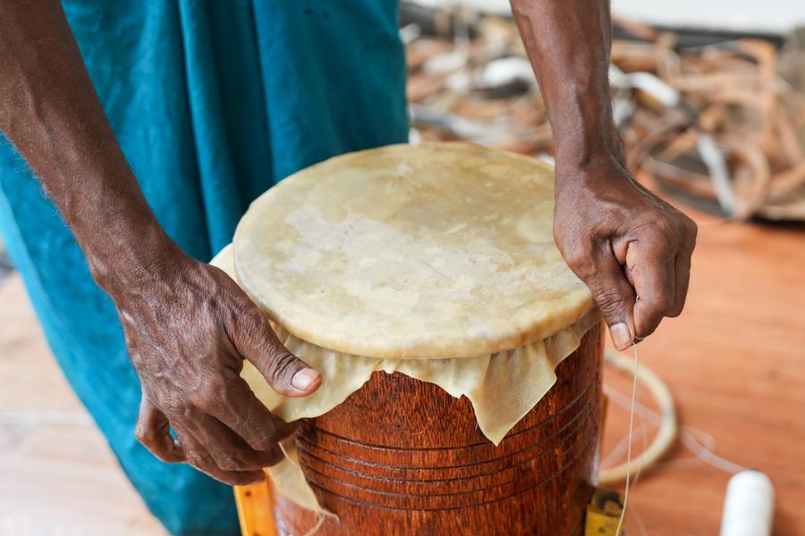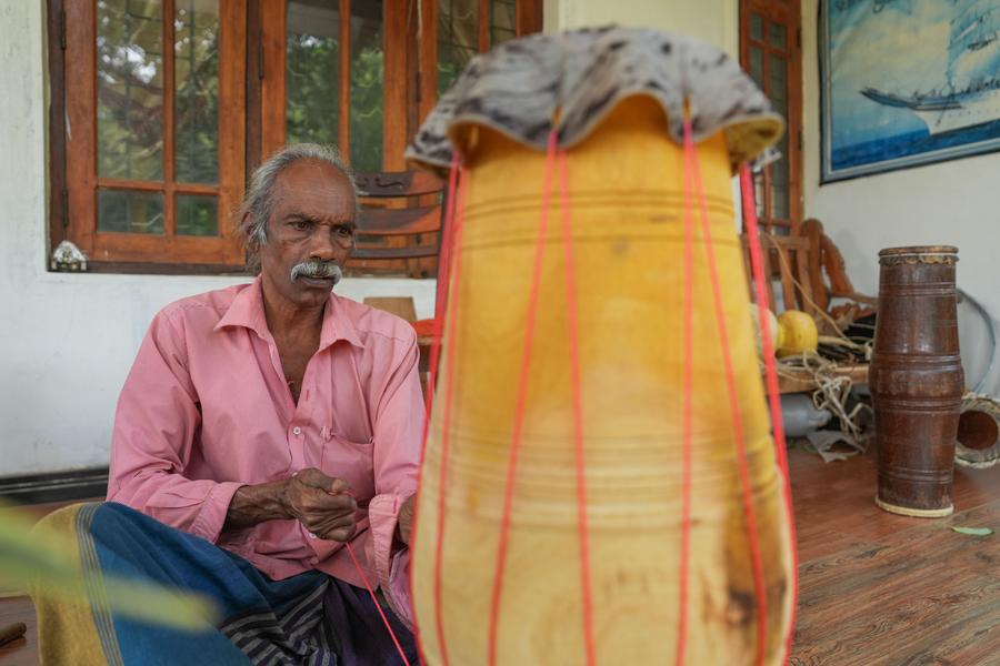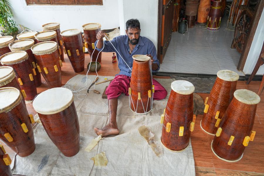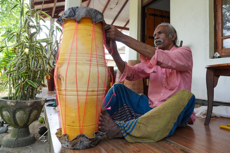A man assembles a traditional drum in Kadugannawa, Sri Lanka, July 3, 2025. (Photo by Thilina Kaluthotage/Xinhua)A person assembles a traditional drum in Kadugannawa, Sri Lanka, July 3, 2025. (Photo by Thilina Kaluthotage/Xinhua)A man assembles a traditional drum in Kadugannawa, Sri Lanka, July 3, 2025. (Photo by Thilina Kaluthotage/Xinhua)A woman processes the barrel of a traditional drum in Kadugannawa, Sri Lanka, July 3, 2025. (Photo by Thilina Kaluthotage/Xinhua)■