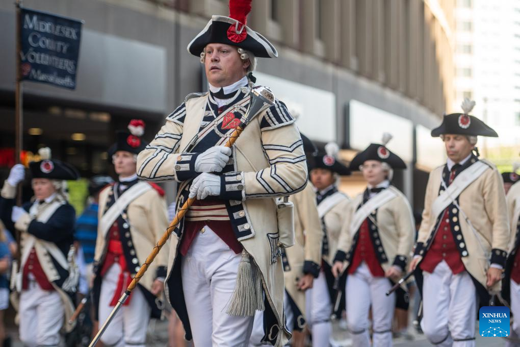 People attend an U.S. Independence Day parade in Boston, Massachusetts, the United States, July 4, 2025. (Photo by Ziyu Julian Zhu/Xinhua)