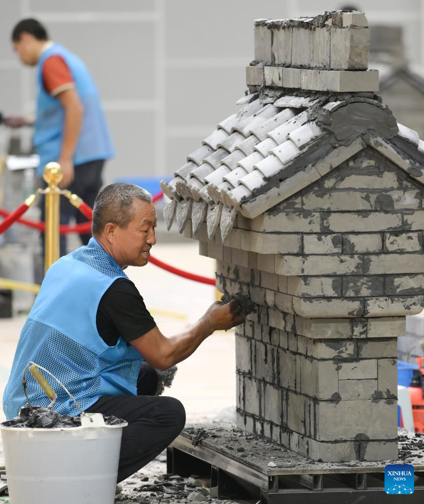 Contestants compete in masonry relic restoration during the 2nd National Cultural Heritage Vocational Skills Competition in Luzhou City, southwest China's Sichuan Province, July 4, 2025. Starting from July 3, the four-day event attracted nearly 300 contestants competing in six categories. (Xinhua/Li He)