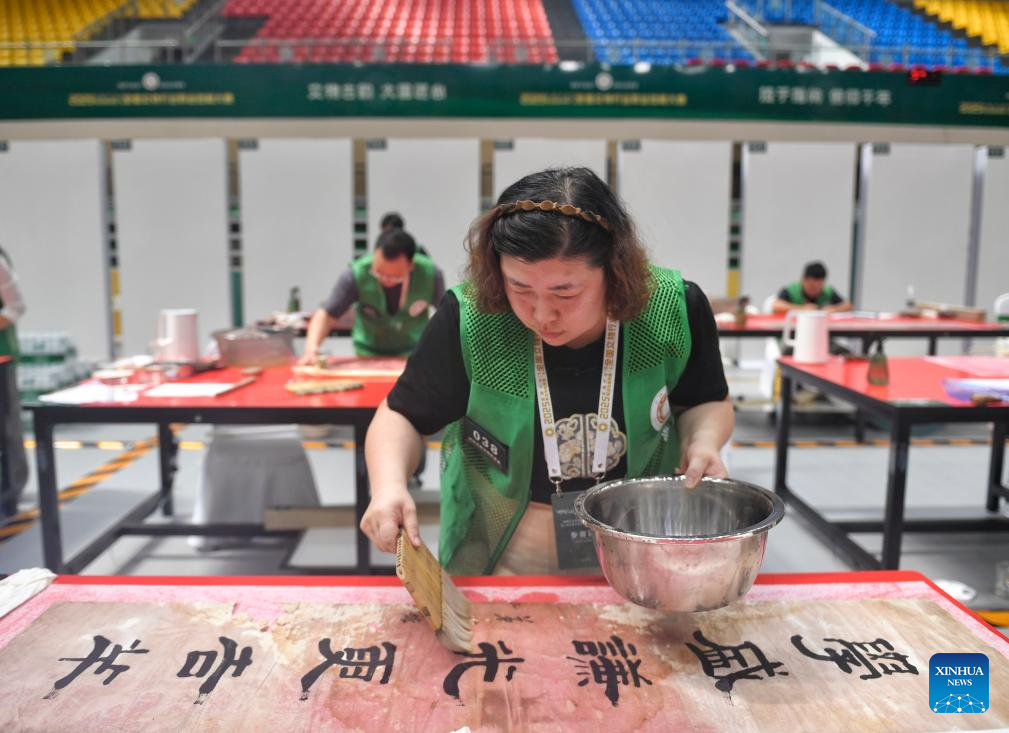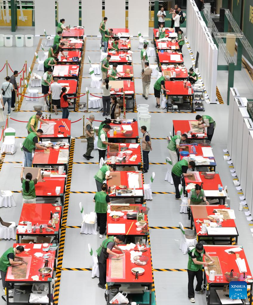 Contestants compete in paper calligraphy and painting relic restoration during the 2nd National Cultural Heritage Vocational Skills Competition in Luzhou City, southwest China's Sichuan Province, July 4, 2025. Starting from July 3, the four-day event attracted nearly 300 contestants competing in six categories. (Xinhua/Li He)