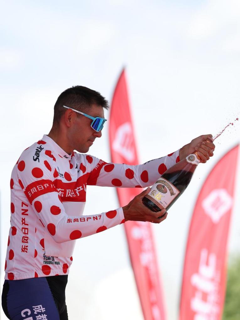 Russian veteran Timofei Ivanov, 34, of Chengdu DYC Cycling Team, claimed the Polka Dot Jersey as the stage's top climber.