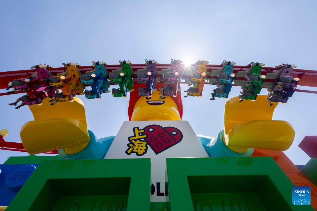 Visitors take a roller coaster ride at the LEGOLAND Shanghai Resort in Shanghai, east China, July 5, 2025.