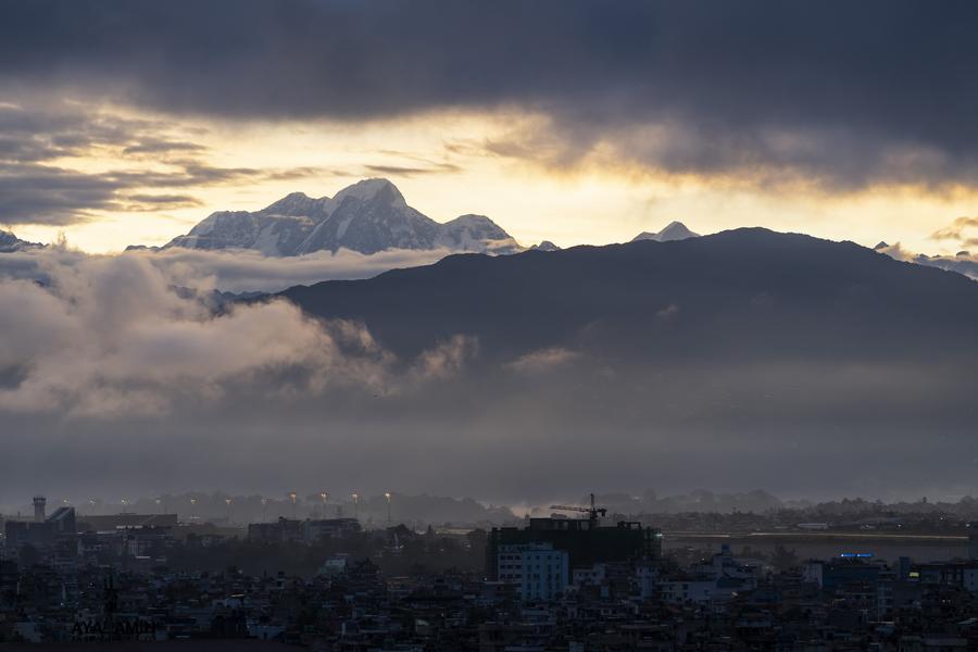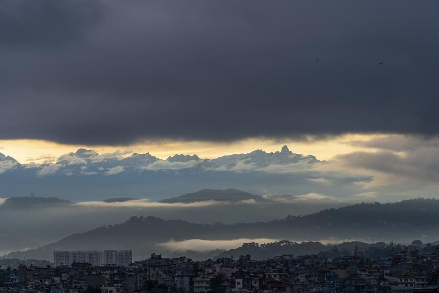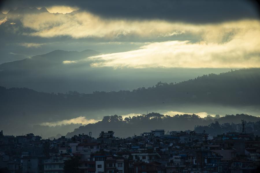LALITPUR, Nepal, July 6 (Xinhua) -- Mountain ranges and morning scenery are seen following rains in Lalitpur, a large valley in the high plateaus in central Nepal.