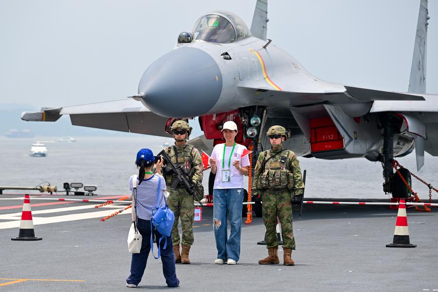 An aerial drone photo taken on July 5, 2025 shows tourists enjoying themselves at a tourist resort in Huzhou City, east China's Zhejiang Province. (Photo by Wu Zheng/Xinhua)A visitor poses for photos on the aircraft carrier Shandong in Hong Kong, south China, July 5, 2025. A fleet of the Chinese People's Liberation Army (PLA) Navy, led by the aircraft carrier Shandong, departed south China's Hong Kong on Monday morning, wrapping up a five-day visit. (Xinhua/Zhu Wei)Students control robots to play football at an AI robot popular science exhibition held at a science and technology hall in Jinhua City, east China's Zhejiang Province, July 6, 2025. (Photo by Shi Kuanbing/Xinhua)This photo taken on July 5, 2025 shows the opening ceremony of the BRICS Business Forum in Rio de Janeiro, Brazil. (Photo by Lucio Tavora/Xinhua)This combo photo shows the views of Meihua Mountain in Liupanshui, southwest China's Guizhou Province, in April 1996 (above, photo by Jiang Xingyuan) and on July 4, 2025 (below, photo by Xinhua photographer Tao Liang). In recent years, Guizhou has made significant progress in ecological construction, striving to transform ecological advantages into developmental strengths. Currently, Guizhou's forest coverage rate stands at 63.3 percent, and its green economy accounts for 48 percent of the province's overall economic composition. (Xinhua)Rangers patrol near Zonag Lake in Hol Xil Nature Reserve, northwest China's Qinghai Province, July 3, 2025. Every year, tens of thousands of pregnant Tibetan antelopes migrate to Hoh Xil between May and July to give birth, while they will leave the area together with their offspring in August. Zonag Lake at the heart of Hoh Xil is known as the "delivery room" of this species. To protect this pure land and its living beings, the rangers of Hol Xil Nature Reserve conduct patrols in the hinterland from time to time. (Xinhua/Du Xiaowei)Rescuers work at the site of a boat sinking accident in Zixing City, Chenzhou, central China's Hunan Province, July 6, 2025. Two people were killed and 27 rescued in the boat sinking accident that occurred Saturday afternoon in central China's Hunan Province, according to authorities. Preliminary investigations revealed that a sudden gust of wind, reaching speeds of up to 30 meters per second, struck the area at the time of the accident. (Xinhua/Chen Zhenhai)Rescuers work at the scene of a residential building collapse in Karachi, Pakistan, July 5, 2025. The death toll in the building collapse in Pakistan's southern port city of Karachi has jumped to 27 as rescuers retrieved more bodies, a spokesperson of the state-owned rescue organization Rescue 1122 said on Sunday. (Str/Xinhua)Fan Xiaotong of Guangdong competes during the elite women's final at the BMX Freestyle Championship of China in Zhangjiakou, north China's Hebei Province, July 6, 2025. (Xinhua/Yang Shiyao)■