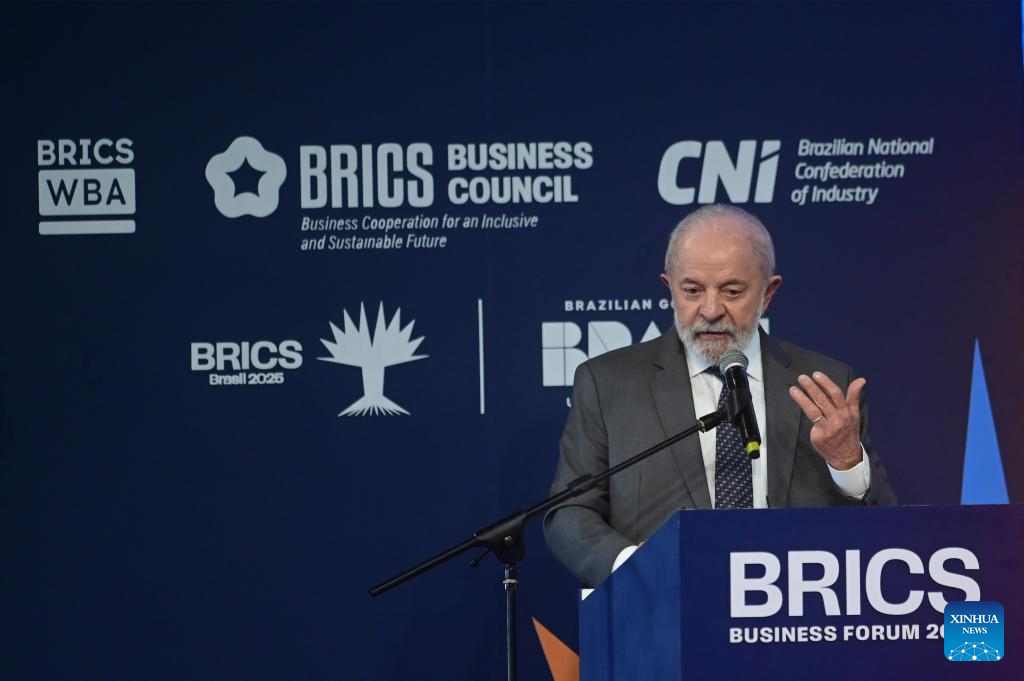 Brazilian President Luiz Inacio Lula da Silva speaks during the opening ceremony of the BRICS Business Forum in Rio de Janeiro, Brazil, July 5, 2025. (Photo by Lucio Tavora/Xinhua)