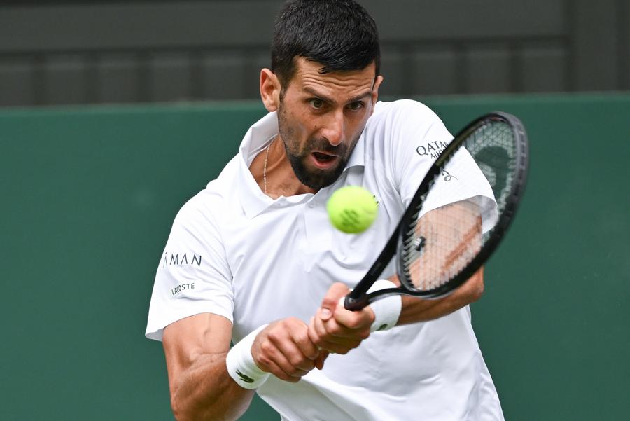 LONDON, July 7 (Xinhua) -- Men's top seed Jannik Sinner advanced to the Wimbledon quarterfinals under unfortunate circumstances on Monday after Grigor Dimitrov was forced to retire due to right pectoral injury while leading their fourth-round clash by two sets.