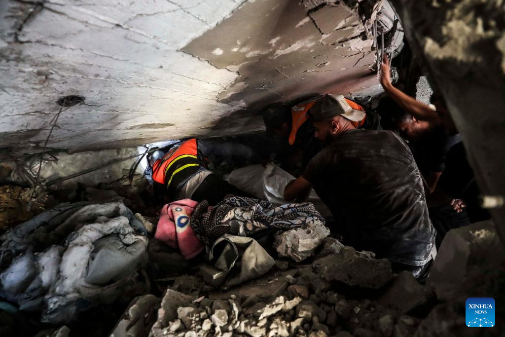 Palestinians carry out rescue operations following an Israeli airstrike in Gaza City, July 6, 2025. At least 43 Palestinians were killed in Israeli attacks across the Gaza Strip on Sunday, the Civil Defense in Gaza said. (Photo by Mahmoud Zaki/Xinhua)